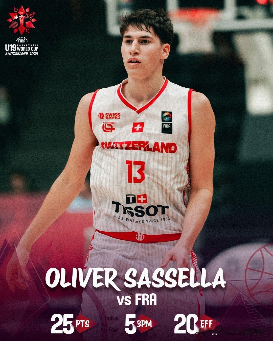 瑞士得分手Oliver Sassella宣布承诺NCAA男篮 爱纳学院Iona,出生于2006年,身高6-6=198,今夏U19男篮世界杯最具杀伤力的射手之一,赛事场均得到14.6分3.6助攻1.6篮板,三分球命中率42.9%,帮助东道主瑞士创造历史晋级八强。