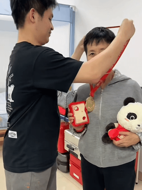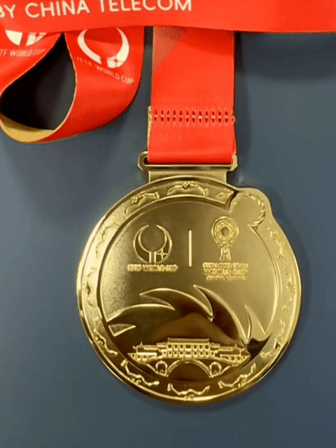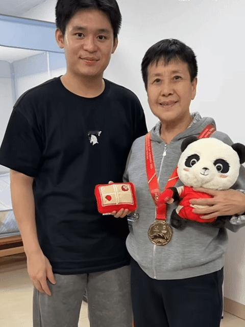 林诗栋为关艳教练戴上成都混团的金牌🥇还特意给关教练带了纪念品🐼 2025.12.17