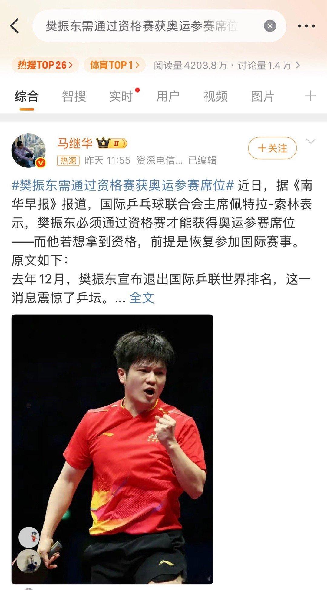 樊振东需通过资格赛获奥运参赛席位 WTT签约微博后🏓热搜越来越夸张了,你看妖魔鬼怪都出来搞事了,请放过这个正独自备战欧冠,从头到尾都没说一句话的樊振东好吗1227一周年到来之际,请各走各的路ok
