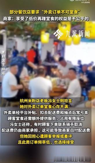 商家回应外卖订单不可堂食:享受了低价再蹭堂食的权益是不公平的 近日,有网友在反映称,马记永兰州牛肉面的许多线下门店都放上了“外卖订单不可堂食”的标识。@九派新闻 记者咨询得知,马记永官方客服称因用餐场景不同,堂食需线下扫码点餐;武汉一门店工作人员则表示,该规定是受商场监管要求,非总部统一指令,商场无要求则不做硬性限制。 对此现象,武汉一麻辣烫店老板刘先生表示,其店铺主打外卖薄利多销,虽外卖单利润微薄,且顾客堂食会占用店内资源、享受免费米饭等服务,但因生意难做、堂食客流量不稳定,外卖是主营收入来源,且此类订单频率不高,他并未拒绝。 杭州米粉店老板冯女士则坦言,她对外卖订单堂食心存不满:外卖单常亏本,堂食还需额外提供服务。有时顾客下单联系骑手取消,配送费仍由商家承担。但她因担心遭顾客举报或差评,且此类订单频率低,也选择接受。冯女士认为,顾客已享受外卖低价特权,再蹭堂食权益并不公平。 来源:九派新闻
