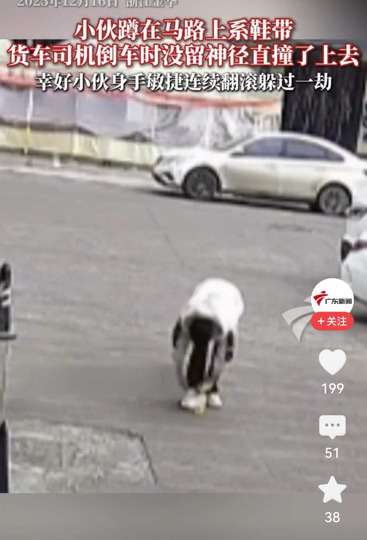 绝了!小伙系鞋带偶遇飞来横祸,神级反应上演生死避险 (个人观点仅供参考,无任何不良引导) 家人们谁懂啊!这波操作直接看傻全网! 路边一个小伙正低头蹲在地上系鞋带,完全没注意到危险正在逼近——一辆车突然失控径直冲了过来!眼看就要撞上的生死瞬间,小伙仿佛自带“危险预警雷达”,身体本能反应拉满,一个行云流水的侧身翻滚,硬生生从车轮边缘极限脱险,全程毫发无伤! 监控拍下的惊险画面曝光后,网友们直接炸开锅:“这反应速度,不去拍动作片真的可惜了!”“系个鞋带系出了鬼门关一日游的剧本,太离谱了!”还有人后怕表示,幸亏小伙反应快,但凡慢半秒,后果都不堪设想。 这里必须给大家提个醒:路边停留时,尤其是蹲低身体时,视线会受限,一定要时刻留意周围车况,尽量选择安全区域停留,遇到突发情况保持冷静,优先快速避险! 最后想问问大家:你觉得这波神反应是天赋加持还是运气爆棚?如果换作是你,当时能躲过这一劫吗? 图片素材来自网络,无任何不良引导。