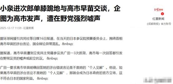 出大事了,高市国会翻车,大臣单膝跪地解围,80万亿投资坑惨百姓   这场闹剧的导火索,是高市早苗先前抛出的涉台错误言论。立宪民主党参议员广田一拿着她的发言记录,连珠炮似的追问:“你说的‘与日本关系密切的他国’到底包不包括台湾?   这是个人见解还是政府立场?” 面对直击要害的质询,高市的回答翻来覆去就那几句空话,一会儿说 “需考虑地区安全局势”,一会儿又扯 “日美同盟框架”,从头到尾没敢正面回应。   眼看首相就要被问垮,站在一旁的小泉进次郎急了。镜头清晰地拍到,这位防卫大臣突然单膝跪地,身体前倾凑到高市耳边,手指在笔记本上快速比划,像是在教她怎么圆话。   可这拙劣的救场不仅没起作用,反而彻底点燃了在野党的怒火。“这是预算委员会,不是自民党私会!”“让首相自己回答!”   嘘声和抗议声浪差点掀翻屋顶,连会议主持人都被迫三次切断直播声音,场面混乱到失控。最终,小泉的发言请求被驳回,高市更是被轰得满脸通红,连头都抬不起来。   但比起国会的狼狈,藏在闹剧背后的真相才更让日本民众寒心。就在这场质询前一天,令和新选组代表山本太郎抛出的一组数据。   把高市政府钉在了 “卖国弃民” 的耻辱柱上:政府计划拿 80 万亿日元砸给美国,这笔钱相当于日本全年 GDP 的 10%,却连一分钱都不肯用来给老百姓降消费税,更别提发生活补贴。   这 80 万亿日元的 “投名状”,要从高市早苗上任后的 “对美示好” 说起。为了打造所谓的 “日美同盟新黄金时代”,她顶着国内经济衰退的压力,硬是要给美国的半导体、能源产业输血。   这笔投资的收益分配早就定好了 “不平等条约”—— 只有等美国先收回成本和担保费后,日美才能均分收益;而一旦收回本金,90% 的利润都要归美国所有。   山本太郎在国会怒怼:“这哪里是投资?分明是给美国交保护费!要赚够 160 万亿日元才能回本,这跟二战时的虚假战报有什么区别?”   更让民众无法接受的是,高市政府砸钱讨好美国的同时,对国内民生疾苦视而不见。日本已经陷在经济衰退里三十年,今年三季度 GDP 还在往下滑,物价涨得比工资快,不少家庭连买菜都要精打细算。   有网友在日媒评论区留言:“便利店饭团都涨了 10 日元,政府不管;电费燃气费月月涨,政府不问;倒是给美国送钱眼睛都不眨,这是把我们当提款机吗?”   面对质疑,高市早苗的回应敷衍到离谱。当山本太郎要求废除消费税或普发补贴时,她只轻描淡写地说 “会调整所得税”“给企业发优惠”。   可谁都清楚,这些政策只会让大企业和富人受益,普通老百姓根本沾不到光。山本太郎当场戳穿她的谎言:“你口口声声说‘相信日本人的潜力’,可连基本生活都保障不了,谈什么潜力?   有给美国送钱的预算,却没钱救老百姓,这就是你所谓的‘以日本为荣’?” 这话问得高市哑口无言,只能低头摆弄话筒。   更荒唐的是,这笔 “肉包子打狗” 的投资,连美国都不买账。高市早苗之前还在众议院公开求见特朗普,想让美国给点 “回报”,结果人家理都不理,甚至早早就警告她 “别乱来”。   这一下,日本彻底陷入了两难:钱投出去了,美国的 “保护伞” 没盼来,反而把自己的经济拖进了更深的泥潭。要知道,日本现在的债务已经是 GDP 的 235%,再这么折腾下去,经济崩盘只是时间问题。   说到底,这场国会闹剧不过是日本政治困局的缩影。高市早苗一门心思抱美国大腿,以为靠砸钱就能换安全、换发展,却忘了执政的根本是民生。   她迟迟不愿为涉台错误言论道歉,无非是想借美国撑腰,可如今美国的冷漠已经摆上台面,国内民众的怒火又烧得正旺,执政联盟在国会还是 “双少数” 地位,她的首相之位早已摇摇欲坠。   山本太郎在国会结尾的追问,或许说出了所有日本民众的心声:“各位国民,你们还要被欺骗到什么时候?”   80 万亿日元的教训该让日本政客明白,靠讨好别人换不来尊严,漠视民生的政府迟早会被抛弃。而这场闹剧留下的,不仅是高市和小泉的狼狈相,更是日本民众对执政者的彻底失望。