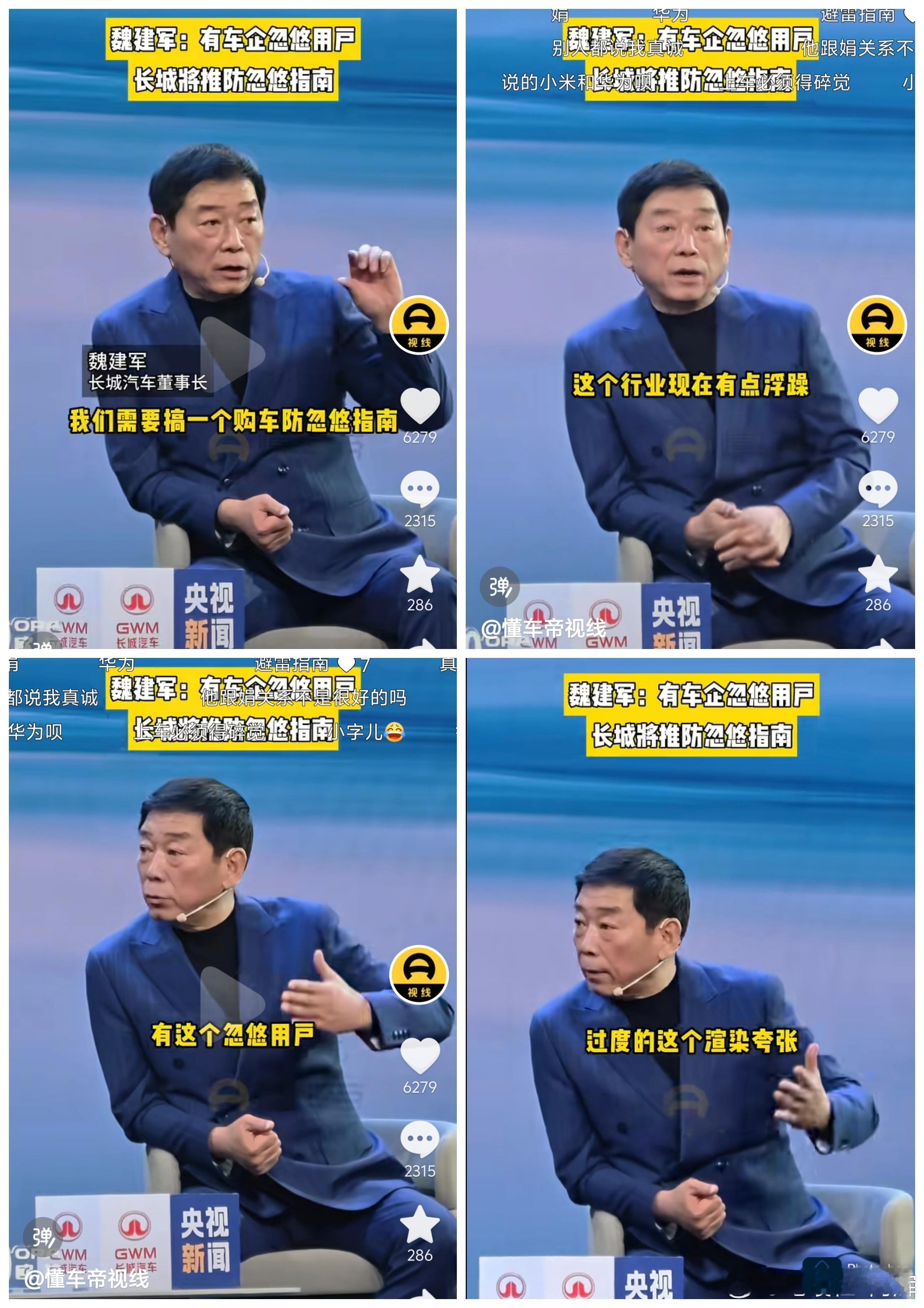 魏总:有的车企忽悠用户,长城将推出防忽悠指南。这是说谁呢,想了半天不明白
