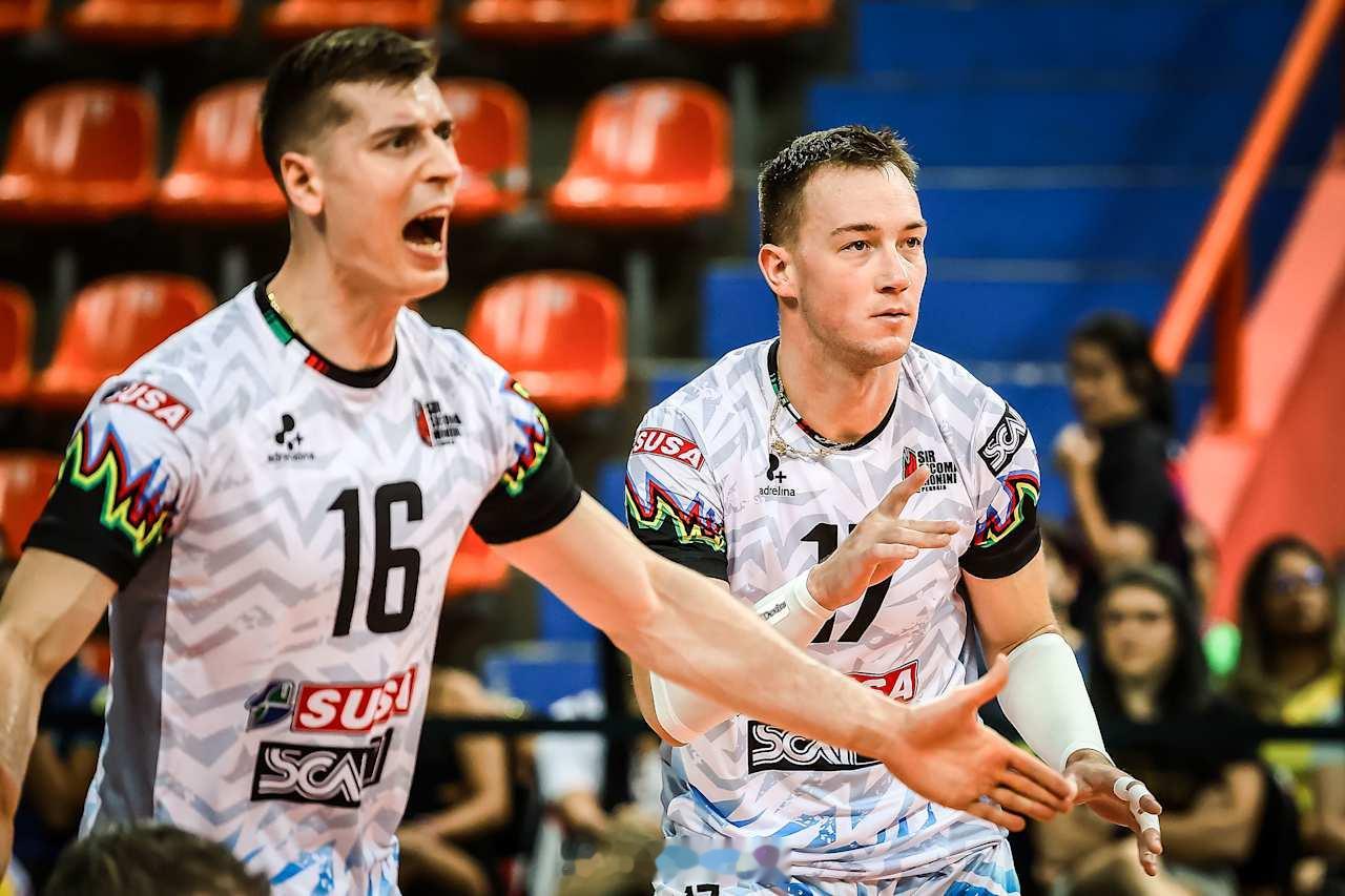 【2025男排世俱赛 小组赛:佩鲁贾3-2大阪布鲁特恩】北京时间18日凌晨,巴西贝伦,小组赛第2轮B组的意大利佩鲁贾以3-2(23-25, 25-16, 25-22, 23-25, 23-21)险胜日本大阪布鲁特恩,开赛两连胜。本塔拉20分(拦4),塞梅纽克17分(拦5),洛瑟13分(拦6),扎沃罗诺克10分,索莱、詹内利各7分;洛佩斯29分,西田有志14分,富田将马13分,拉里11分,彭世坤、西川馨太郎各4分。扣球50-67、拦网19-7、发球7-6、对手失误43-29。