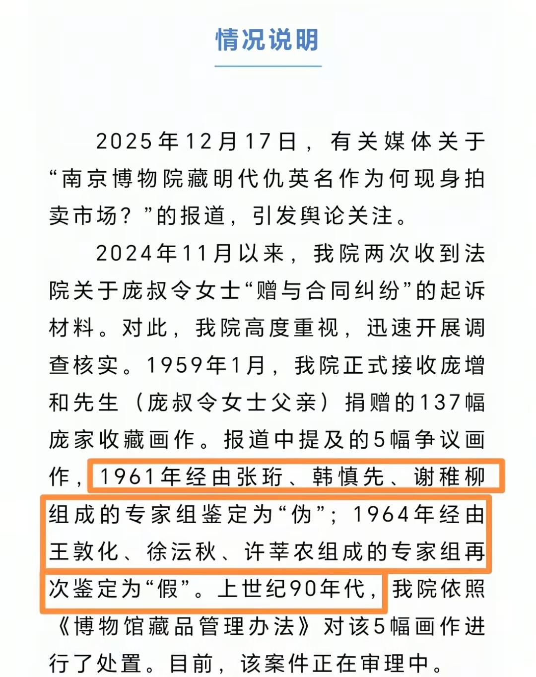 南京故宫博物院称《江南春》是假画,已于上世纪90年代处理!后被南京一家博物馆收藏,如今出现在出现在拍卖场上,价值8,800万! 一句经不起任何推敲的假画,就让文物莫名其妙的流出了南京故宫博物院,关键是这幅假画后被其他博物馆收藏,该博物馆是一家私人博物馆,然后直到2025年出现在拍卖场上价值8,800万。 里面有太多匪夷所思的点了,就算是假画,也应该退给相关捐赠人的后人吧,而是进行自行处理,这不怪公众怀疑将真画给调包了。 各位是怎么看的?欢迎评论区留言。
