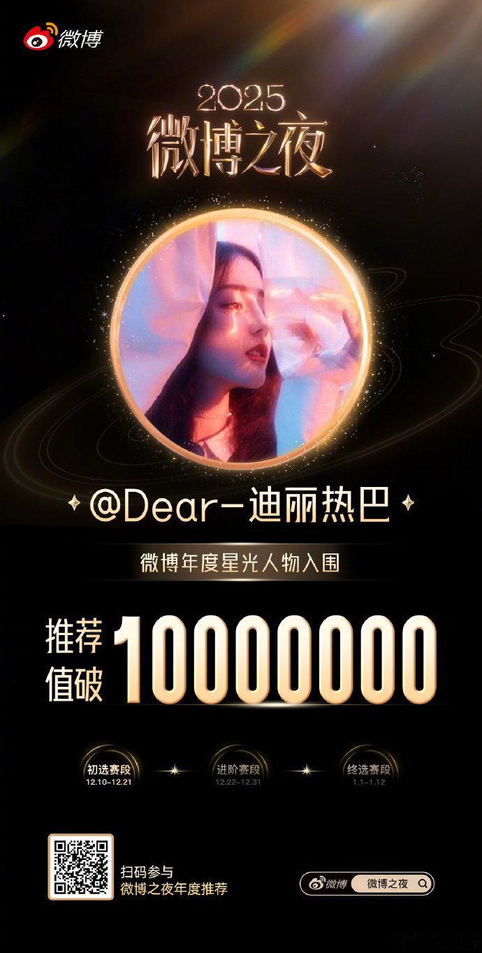 迪丽热巴星光人物推荐值破千万梓渝田栩宁迪丽热巴年度星光人物top3恭喜迪丽热巴星光人物推荐值破千万,初选赛段总榜TOP3,女星TOP1,热巴实至名归,星光熠熠