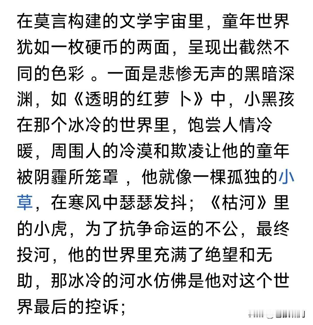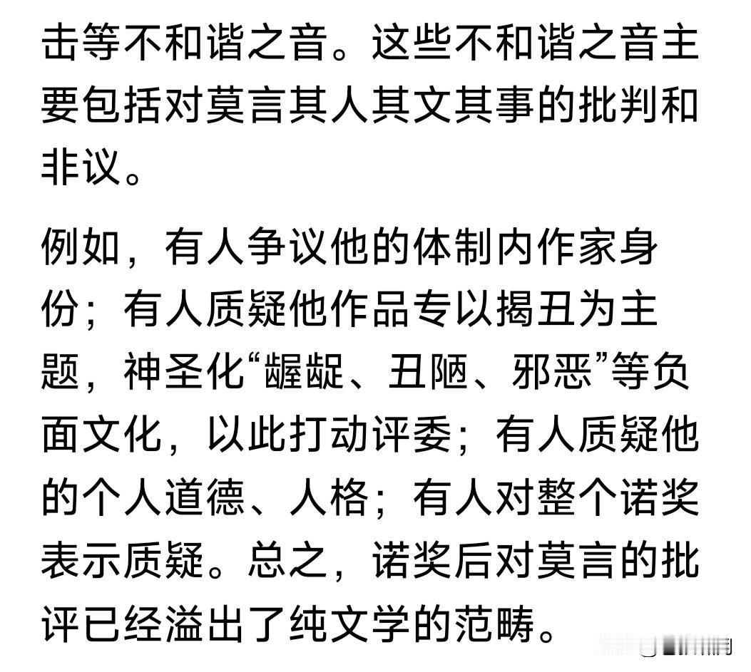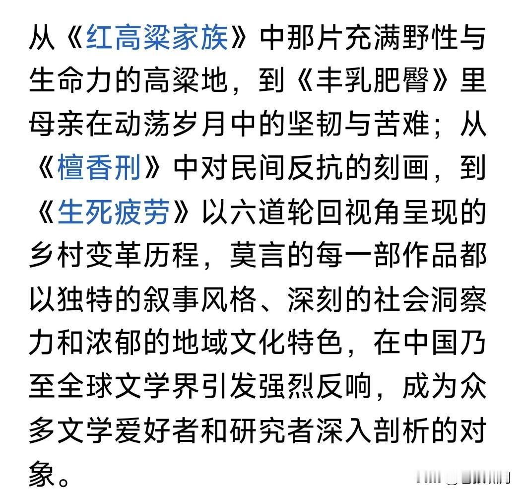 网友不解:莫言作品为苍生说话,为何有一些“苍生”称他为“莫桑”?本人看过这些评论,截取四条大家阅读。 1.莫言是敢说真话的作家,难能可贵!2.“基本盘”对莫言老师恨之入骨! 3.当年就有人朝谭嗣同身上扔垃圾! 4.他为哪个苍生说了什么话? 以上四条评论,前三条是对莫言的认可支持,以及对诋毁莫言者的批评!第四位发言者,是对莫言的否定。 莫言是当代中国文学大师,获得诺贝尔文学奖,为中国争得了世界荣誉!国家褒奖社会认可,偏有一些“苍生”不买账,称莫言“莫桑”让人哭笑不得! 苍狼不想多说什么!就用易中天教授一句话,送给这些诋毁莫言的网友:毫无疑问,莫言忠诚记录了一个时代历史。忠言逆耳,不喜欢莫言者,你可以去读浩然。但若诋毁,就是无知无畏! 比如这位网友说:莫言为哪个苍生说了什么话?请问你读过莫言的书吗?理解文学的意义吗?难道莫言为你说句话,才算为苍生吗?他记录时代历史,为社会争取到的温暖,你正在享受呢! …………