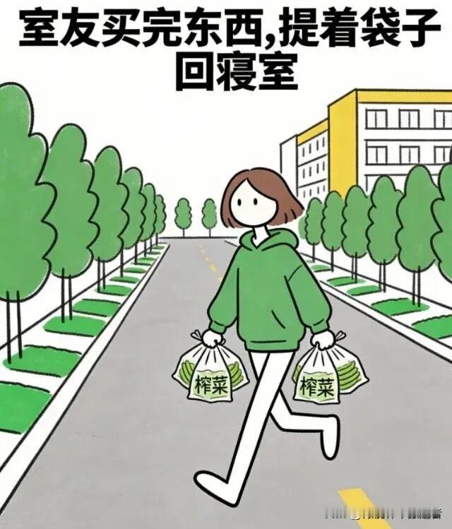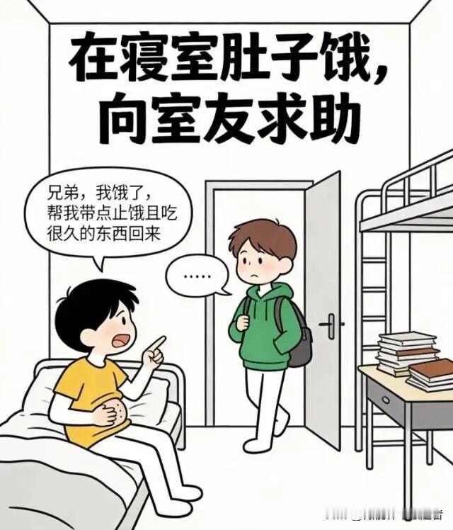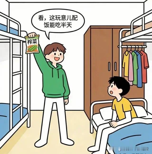 趣味漫画:在寝室饿了,叫舍友给我带点吃的,舍友给我带了几袋榨菜