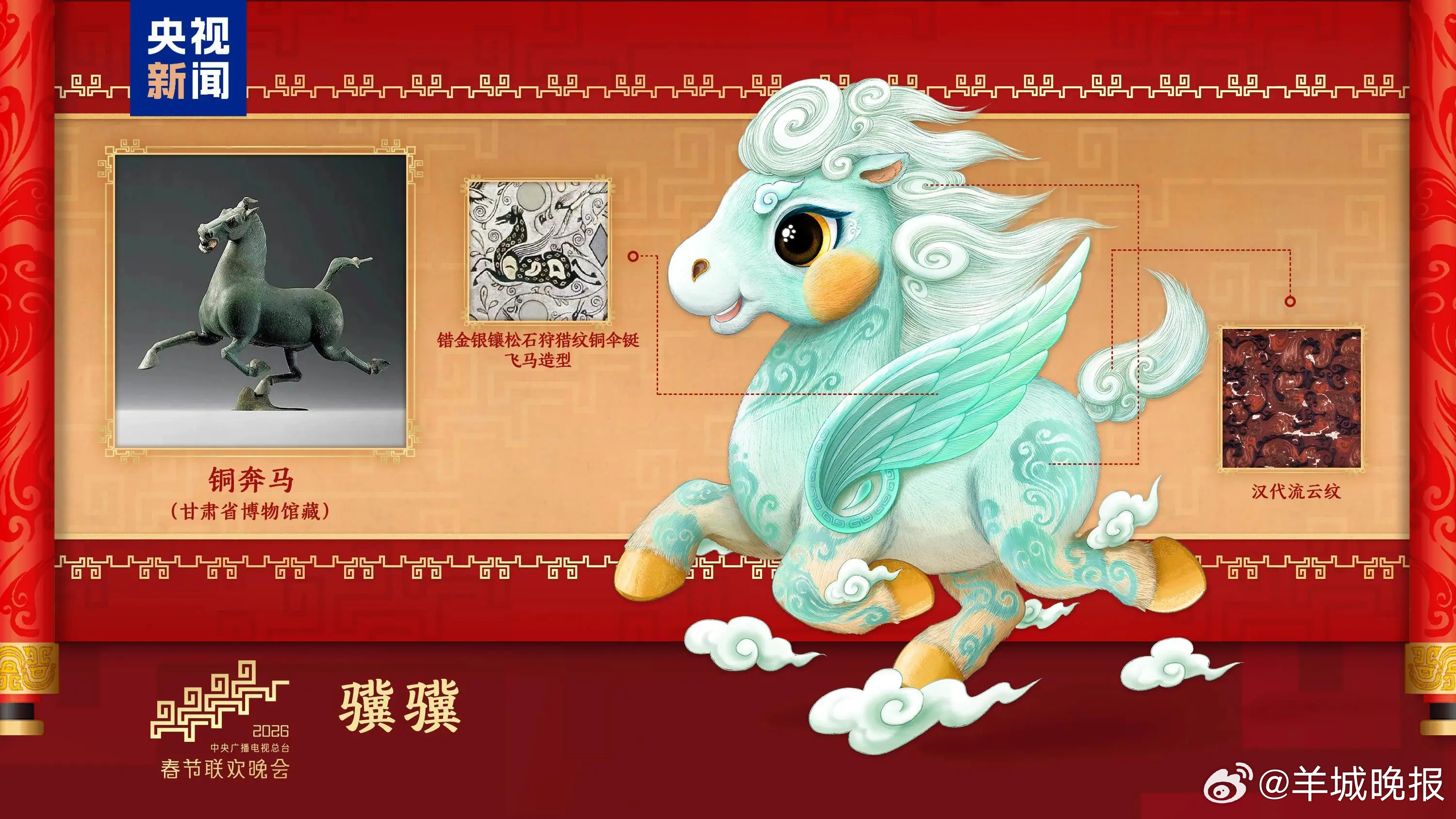 【#马年春晚吉祥物发布#】#骥骥是一匹网红马#12月18日,中央广播电视总台《2026年春节联欢晚会》发布吉祥物形象。“骐骐”“骥骥”“驰驰”“骋骋”四匹骏马,活泼可爱、意气风发,与晚会主题“骐骥驰骋 势不可挡”一脉相承、相得益彰。#央视春晚给铜奔马开了美颜滤镜#四匹骏马中,“骥骥”还是一匹“网红马”。它的身姿参考国宝级文物铜奔马,翅膀借鉴错金银镶松石狩猎纹铜伞铤上的飞马造型。“骥骥”双翼舒展、腾云逐日的英姿,彰显奋发向上的精气神。近年来,以铜奔马为灵感的文创作品频频出圈。2022年,甘肃省博物馆根据馆藏文物铜奔马设计研发文创毛绒玩具,推出的“神马来了”IP系列文创产品,当年6月14日产品上线后,单日销量突破4000件,现货三天内售罄,开启15-25天预售周期。线上平台数据显示,该玩具月销量超千件并登顶文创类商品榜单,同年入选“2022年度文博行业十大热点事件”。2025年11月25日,文化和旅游部正式发布2026年“欢乐春节”官方吉祥物“吉祥马”,设计灵感正源自甘肃省武威市雷台汉墓出土的国宝级文物——铜奔马(马踏飞燕)。这一萌态十足的形象,一经亮相便刷屏全网,网友直呼“穿越两千年的新春惊喜,太戳心了!”([原创]记者:詹锡伟;编辑:郑宗敏;审签:谢杨柳)