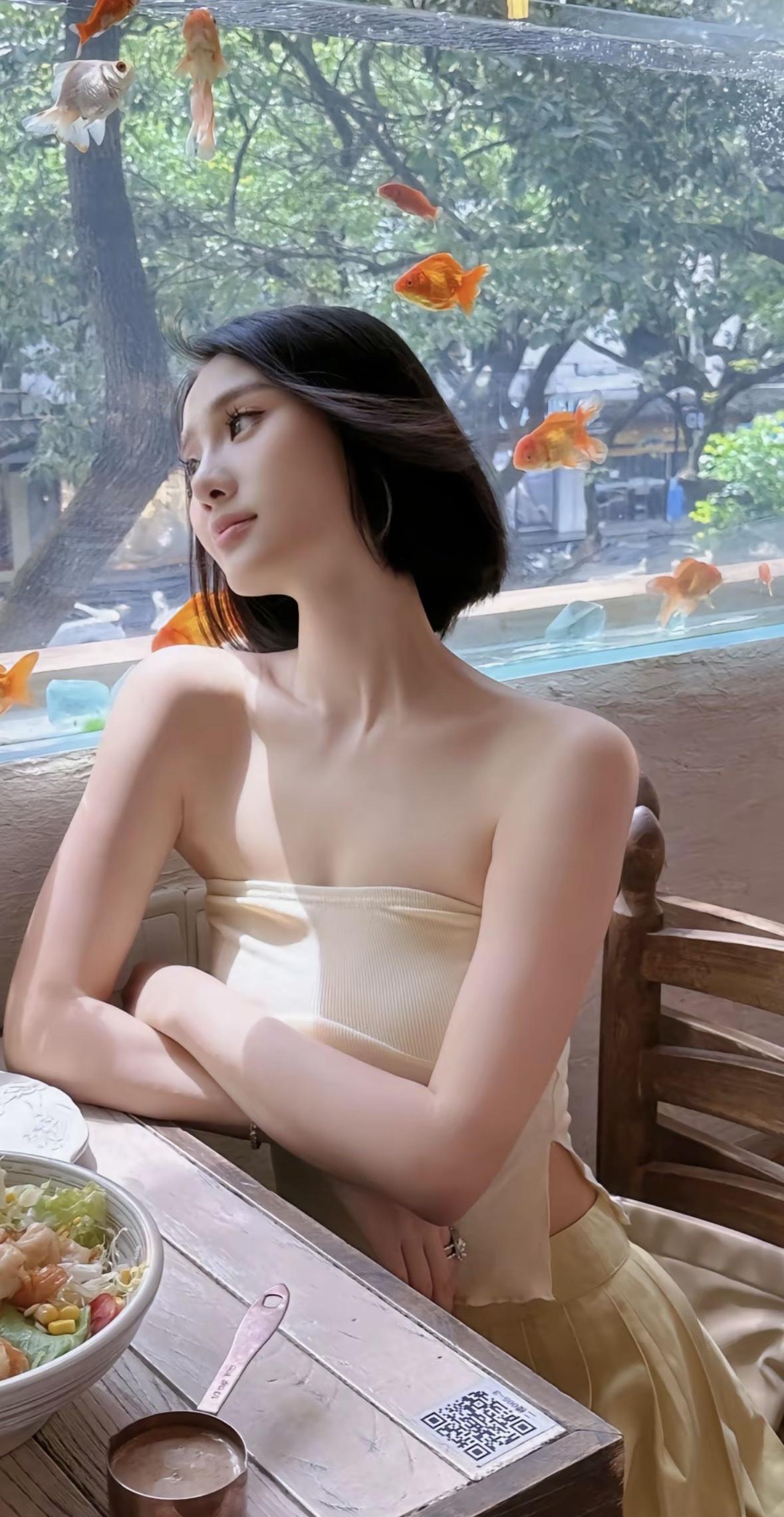 阳光洒进咖啡馆,少女与金鱼共舞,静谧时光