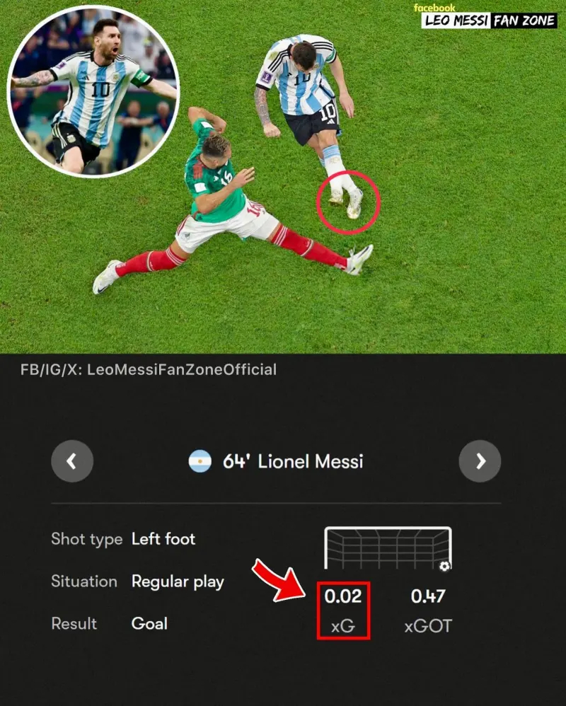 如何评价世界杯梅西对墨西哥的贴地斩预期进球只有0.02