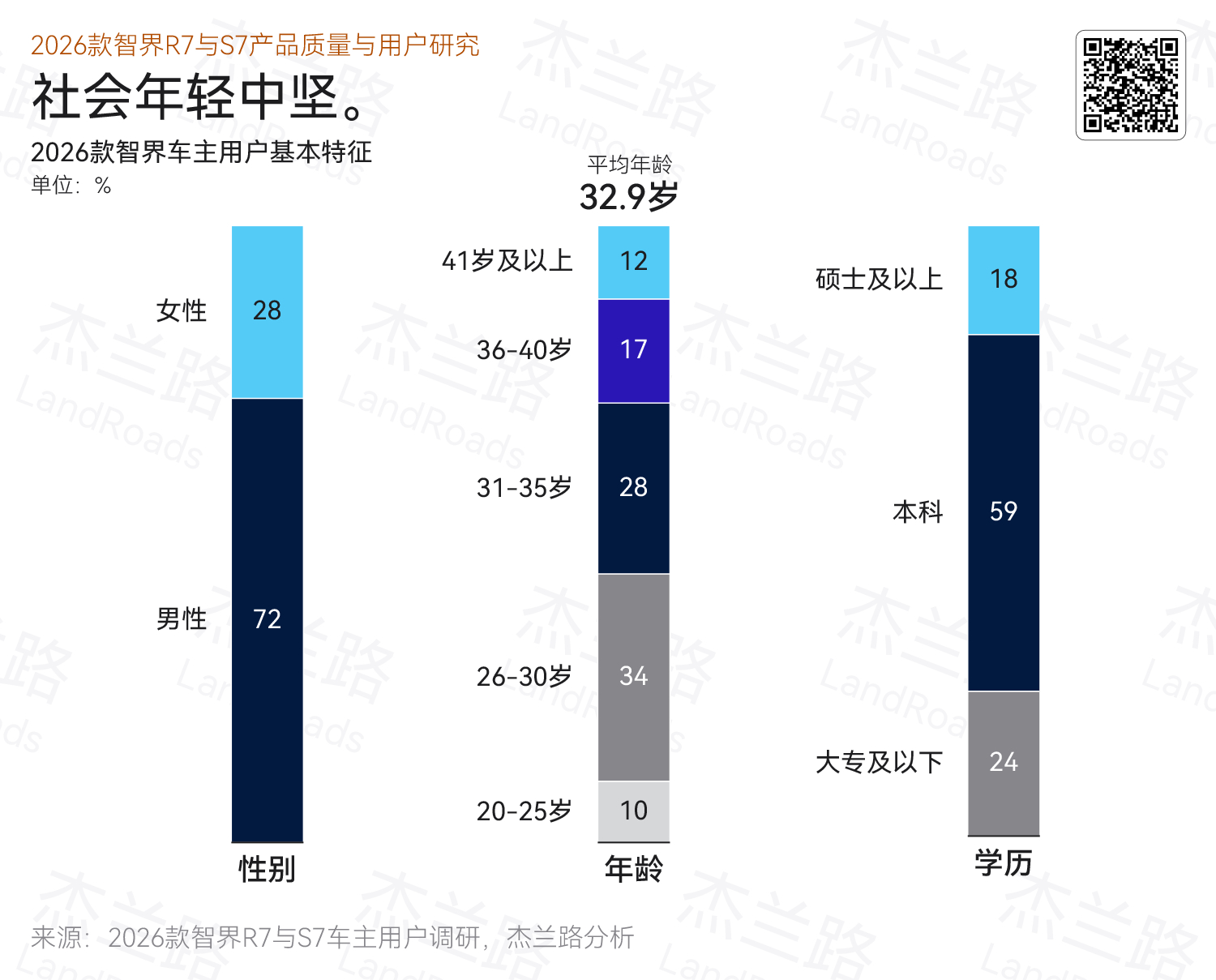 智界现在为何卖得好?一个是产品定义准确,包括辅助驾驶、安全、智能座舱都成为用户新购车的重要参考 年轻人重新将安全列为买车关键因素 另一个就是吸引了大量高收入的年轻用户群。所以老余说得对:质量才是用户转介绍的最大底气