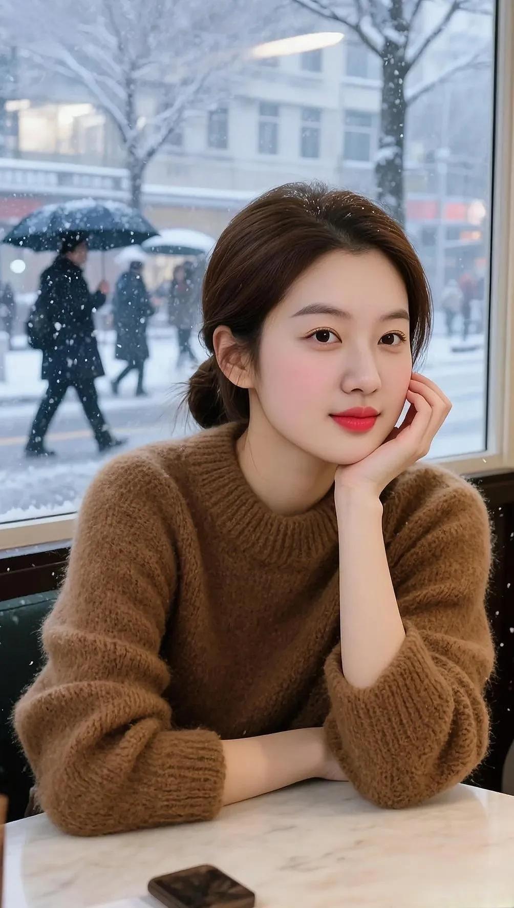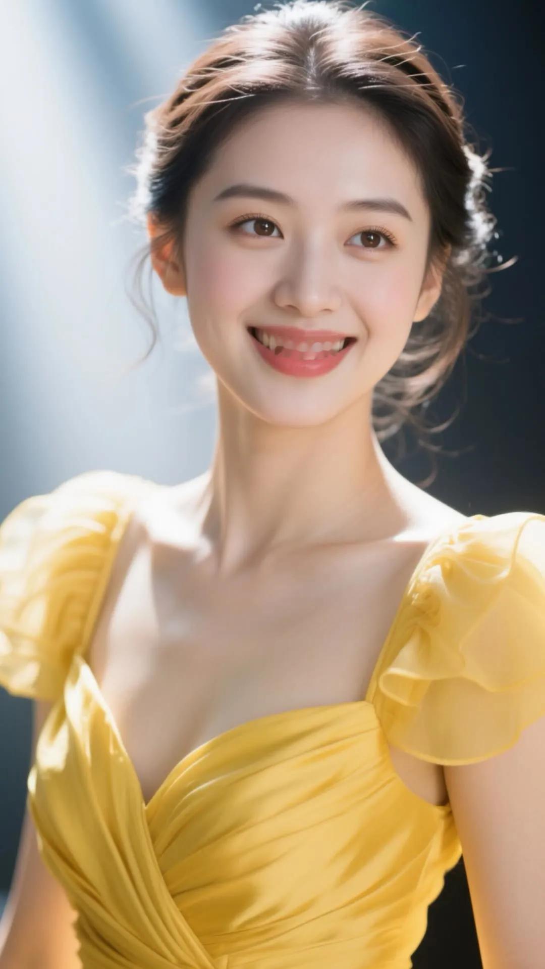 甜美笑容,黄色针织衫,红色项链,元气满满的一天!😊✨