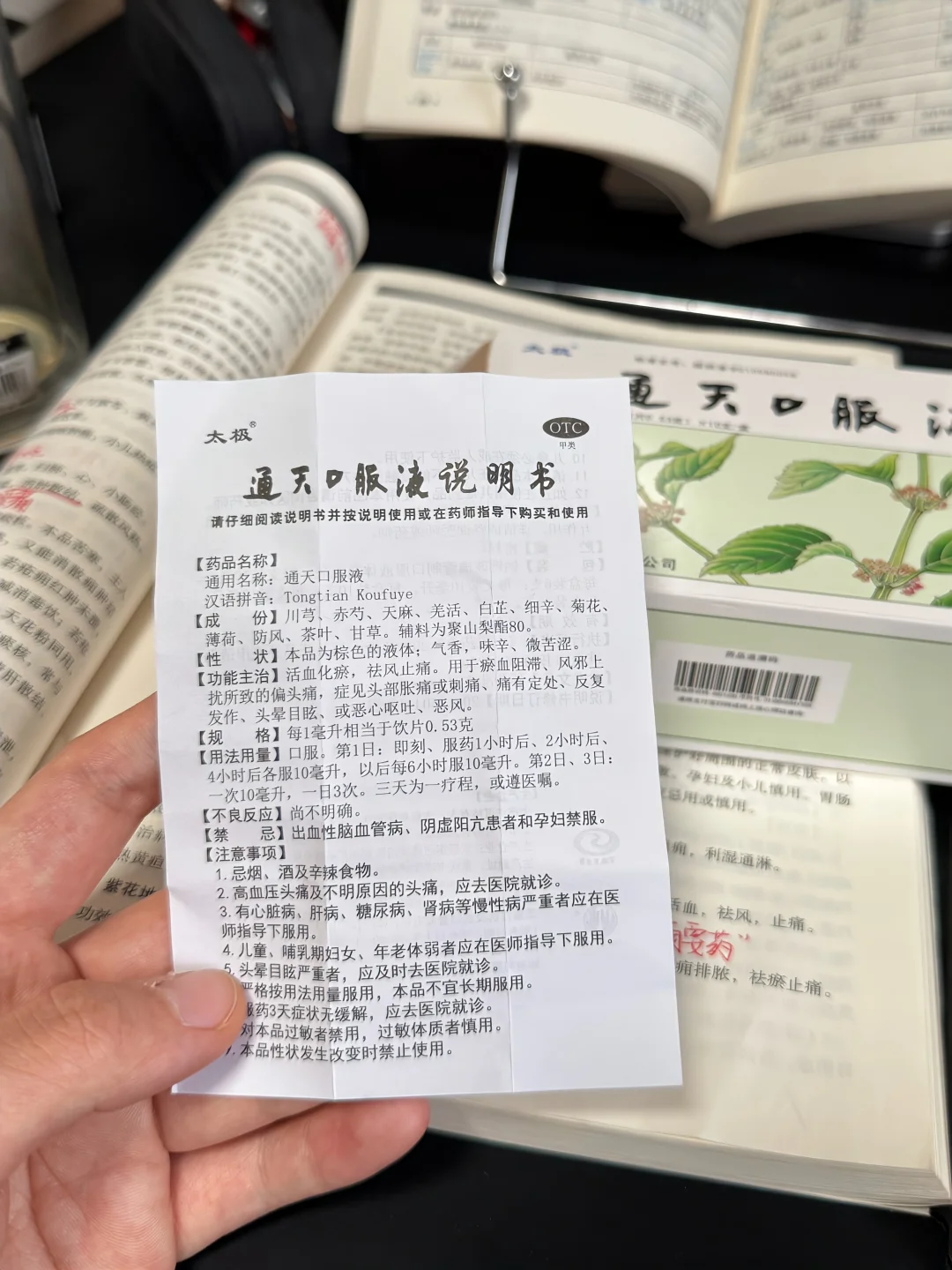 一到换季、熬夜或者压力大的时候 就容易风邪上扰导致偏头痛 头部开始胀痛或者刺痛 那种反复发作、头晕目眩 不敢大声说话 不敢快速转头 连看手机屏幕都觉得刺眼 后来慢慢摸索出点门道: 少喝咖啡浓茶 喝太极通天口服液 (源自名方“川芎茶调散”,经改良,加减化裁而成。通经络、通脑络、定头痛) 别让颈肩一直僵着 压力大的时候逼自己歇五分钟 哪怕只是发呆也好