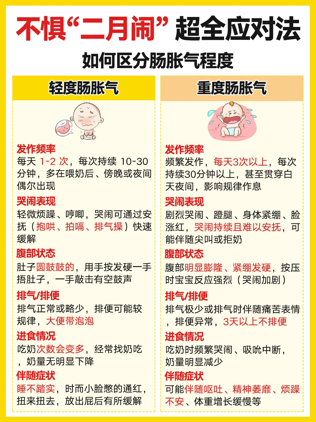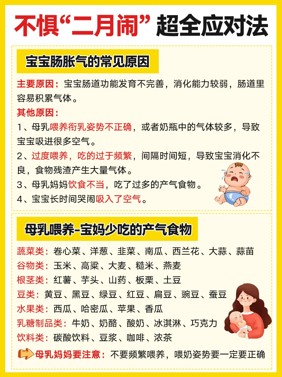 其实二月闹不一定就是二月份才出现,没满月的宝宝也会。宝宝奶量骤增,肠道消化不了,会产生大量的气,宝宝就会出现胀气哭闹。