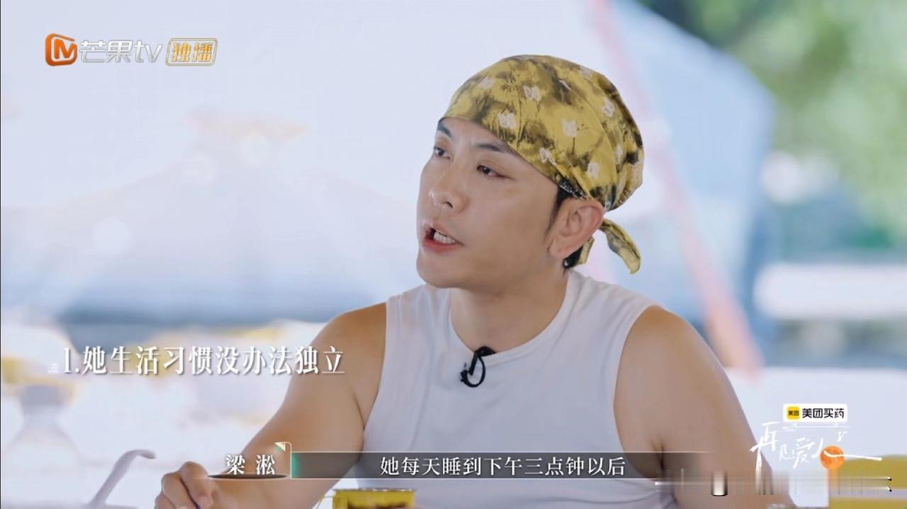 梁淞装都不装了,他已经不想过了!最新一期《再见爱人》,李雪琴问梁淞:“你觉得何美延有勇气离开你吗?”梁淞觉得没有,因为她没有那个实力。 首先,她的生活习惯就没有办法完全独立。每天睡到下午3点起,早上6点才睡,孩子怎么跟她过?美延认为自己还是会接送孩子上学放学,有正经事会调整作息。 第二,她经济上也不独立,不是因为在家带孩子才没赚钱,是带孩子之前就没赚钱。美延立马反驳,偶尔还是赚一点,只是不稳定。梁淞说,她一年就几千块钱广告费,那怎么算。 最重要的是,在梁淞眼里,美延没有为这个家付出任何东西。孩子是阿姨,爷爷,奶奶三个人在带,她没有自己关注的事情,还总给他制造问题。 今天这期节目,梁淞的表现可以说是破罐子破摔了,直接不想过了。但是观察室的嘉宾认为梁淞太过分,说话太难听。 而我觉得梁淞心里已经不爱了,所以他看到的都是美延不好的,虽然我觉得梁淞说话太难听,态度也伤人,但说实话……我也没办法完全站到美延那边去。 美延那些颠倒的作息,情绪的依赖,高度敏感,低自我认同……这些加起来,换谁面对可能都会累。毕竟,婚姻里的“底气”,有时候不是对方给不给,而是自己能不能立得住。 梁淞何美延