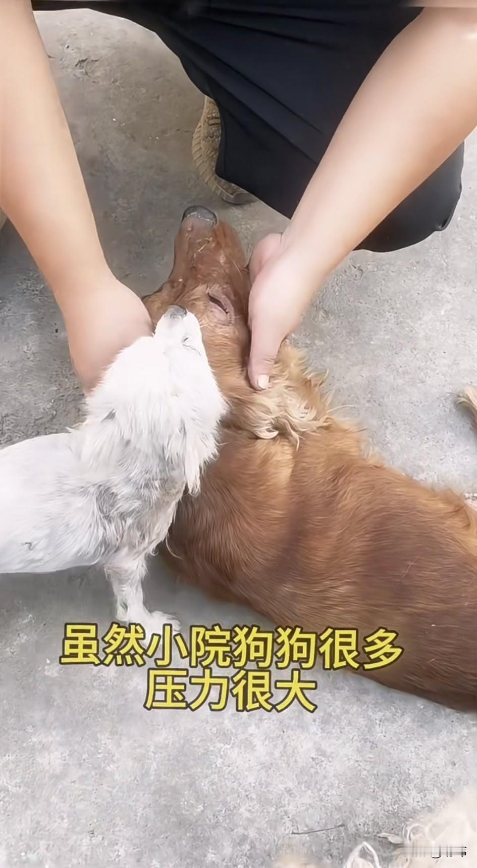 太可怜了!这天一位大哥去菜场买菜,当他走到卖狗肉的摊位的时候,看到令人泪目的一幕,只见狗肉车上只剩下一只可怜的狗狗,它正在一边流泪一边发抖,因为它经历了太多的生离死别,见过了太多的同伴被杀生。 此刻它十分明白自己将面对什么,善良的大哥十分同情它的遭遇,于是决定救助收养它,因为本来大哥就特别喜欢狗狗,他收养了好多只狗狗,都是救助的,最终他花钱买下了这只狗狗,然后带它去做了检查,把它带回自己的小院收养,虽然那里已经有很多狗狗了,但他依旧非常疼爱它们,而这只狗狗很快和它们打成一片,也恢复了活泼开朗的性格!