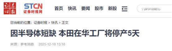石破茂预言果然应验,中方还没开始反制,日企就已经撑不住了 日本前首相石破茂 11 月在东京论坛上的嘶吼还没散场,12 月 17 日共同社的一则消息就狠狠砸在了日本政坛脸上,本田公司宣布,从 12 月下旬到明年 1 月上旬,中日两国的工厂全要停摆:和广汽合资的工厂要停产 5 天,日本本土的埼玉、铃鹿工厂不仅停 2 天,剩下的日子还要减产。 这哪里是普通的生产调整?分明是石破茂的预言提前应验,中方连反制的旗子都没举,日本的支柱产业就先慌了神。 要说清这事儿的来龙去脉,得先拎明白石破茂为啥急着喊 “救命”。这位日本政坛的 “老油条” 心里门儿清:自 1972 年中日建交以来,历届政府对涉台问题都 “小心再小心”,根本不敢碰红线,本质上是被经济命脉捆住了手脚。 日本外务省的统计摆着呢,中国常年占日本进口额的 22% 以上,4300 种重点商品里近 40% 高度依赖中国进口,汽车零件 46.1% 来自中国,稀土 60% 靠中国供应,连青霉素这类基础药 80% 都得从中国买。 石破茂在演讲里拍着桌子问 “日本还能存在吗”,不是危言耸听,是真怕高市早苗把这条生命线给作断了。 可高市早苗偏要往火坑里跳。这位刚上台俩月的首相,把台湾当成了 “蝎形战略” 的毒嘴,一边在国会喊着涉台谬论,一边把防卫开支堆到 GDP 的 2%,还拉着美国在南海搞军演。 她算的是政治账:靠对华强硬讨好右翼、抱紧美国大腿,巩固自己的权位。可她没算明白,企业的账本根本经不起折腾 —— 这次本田停产的直接原因是半导体短缺,但根子早埋在了供应链里。 懂行的都知道,全球电子元件巨头安世半导体早被中国控股了,之前本田的北美工厂就因为这事儿停过产。 虽然这次没明说缺的是安世的货,但用脚想也知道,日本半导体产业早没了当年的风光,高端芯片靠进口,低端元件依赖中国供应链,一旦某个环节卡壳,整个生产线就得 “趴窝”。 这已经不是个案:丰田上半年就因为中国零部件断供减产,索尼的相机模组工厂也差点停摆,本田自己的财报都预告了,就因为产量上不去,今年营业利润要缩水 68 亿人民币。这些企业心里比谁都清楚,真把中国惹毛了,不用关税制裁,光是供应链动一动手指头,日本制造业就得喝西北风。 就在本田宣布停产的节骨眼上,高市早苗突然改了口风,又开始喊着要 “中日对话”。可这出戏演得也太假了:前脚刚和美军搞完联合演习,后脚就想拉中方谈合作;自己不撤回涉台谬论,倒怪中方 “不愿沟通”。 中方的态度早就亮明了:外交部直接引用日本学者的话怼回去,真正的对话得从尊重开始,你连基本立场都歪了,谈个啥?结果中日韩卫生部长会议上,中方直接派了工作级官员,把她的部长级会面梦给戳破了。 说到底,高市早苗的算盘打得噼里啪啦响:一边靠强硬姿态稳住国内右翼,一边喊对话想让中国放供应链一马,典型的 “又要当又要立”。 她心里清楚,日本根本耗不起 —— 粮食要从中国进口五十亿美元,能源航道得看中国脸色,要是真把中方惹急了,切断经贸联系就是 “经济核弹”。可她骑虎难下啊,自己亲手煽动起来的民粹情绪,现在要是低头道歉,立马就得被反噬掉权位。 这事儿最讽刺的地方在于,石破茂早就警告过 “最危险的时刻来了”,还提起前首相田中角荣的话:经历过战争的政治家在,日本就不会犯傻。 可现在的日本政坛,满脑子都是权斗和站队,根本没人在乎企业的死活。本田工厂的停产通知,与其说是给工人看的,不如说是给高市早苗递的 “病危通知书”—— 别以为靠美国就能撑腰,经济的账,最终还得自己买单。 更值得警惕的是,日本政府还在耍小聪明:嘴上喊对话,手里却在放宽武器出口限制,想给南海国家卖武器围堵中国。这就像输急了的赌徒,一边求着对手手下留情,一边偷偷摸牌作弊。 可中国不是傻子,供应链的主动权攥在手里,外交的底线摆得明明白白。高市早苗要是还不清醒,下一个停摆的可能就不只是本田的工厂,而是整个日本经济的根基。 石破茂那句 “死了三百万人的教训不能忘” 还在耳边,本田的停产公告就成了最现实的注脚。帝国的衰落从来不是突然崩塌,而是政客在上面瞎折腾,企业在下面扛不住 —— 这出戏,日本还打算演多久?