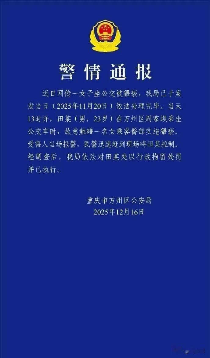 “这反击太解气了!”重庆万州一辆公交车上,女孩遭遇变态两次猥亵,她没有忍气吞声,而是悄悄拍下视频留存证据,随后直接揪起对方衣领当场对峙,最后报警将猥亵者送进派出所! 事后女孩坦言,最让她心寒的不是被骚扰,而是满车厢乘客的冷眼旁观。但她坚定表示:“我不能沉默,不能让他觉得女性好欺负!” 目前,警方通报已依法对猥亵者处以行政拘留。 此事曝光后,不少网友纷纷表示:“看了真的心疼,为什么旁观者都选择沉默?多一点挺身而出,坏人就少一点嚣张!” 周少想说,女孩的冷静和果敢反击,是对不法侵害最有力的回击,这份勇敢不仅守护了自己,更给无数家长和孩子上了一堂生动的安全教育课。 面对不法分子侵害,沉默不是自保,学会留存证据、勇敢反击、寻求法律帮助,才是保护自己的最佳方式。 这事也给大家提醒,教会孩子“遇事别怕、留存证据、果断报警”,远比单纯叮嘱“要乖要听话”更重要。 当然,旁观者的冷漠,更值得我们反思:当正义需要挺身而出时,每一个人都不该是局外人。这份勇敢与清醒,值得所有人点赞!#寻美三湘# #长沙新朋友#