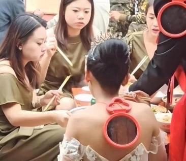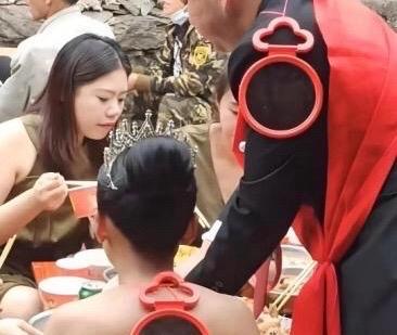 朋友结婚来吃席,结果看见他俩背后都挂着镜子,这习俗是什么意思啊?有谁知道啊