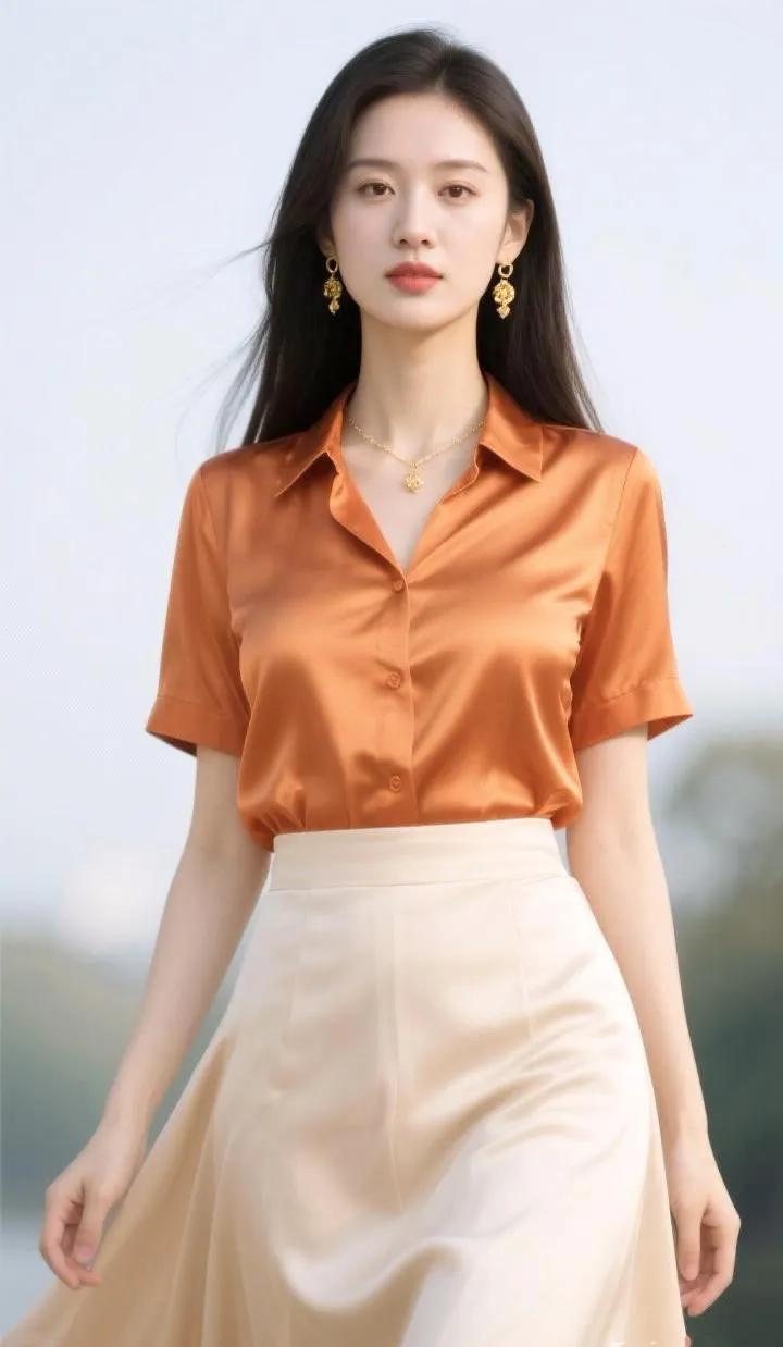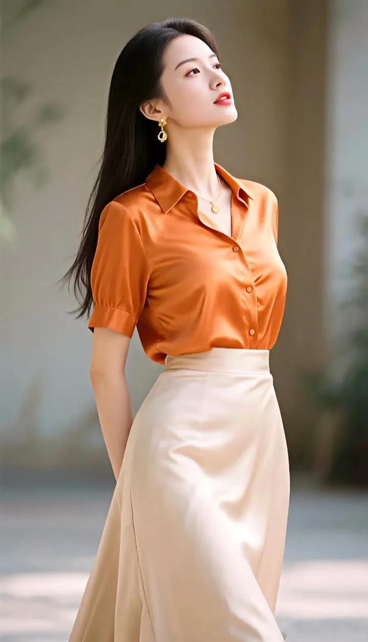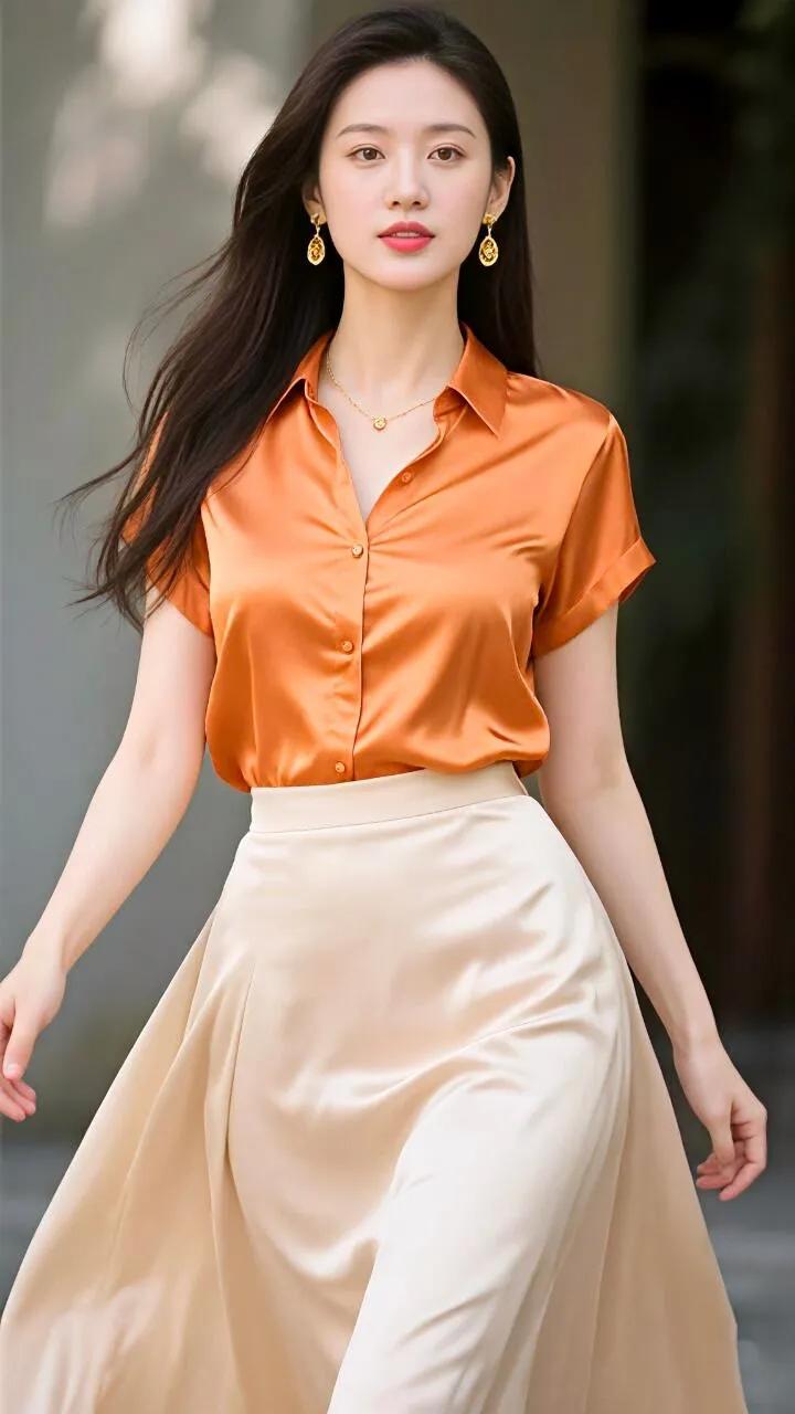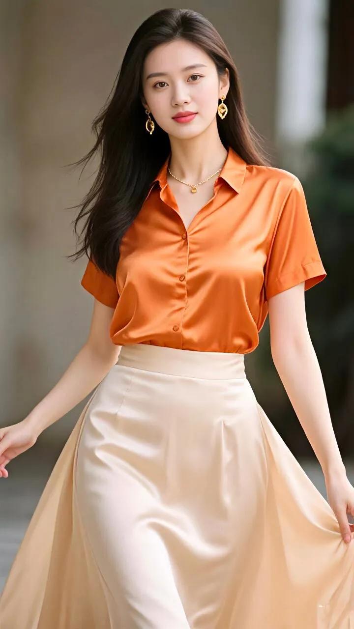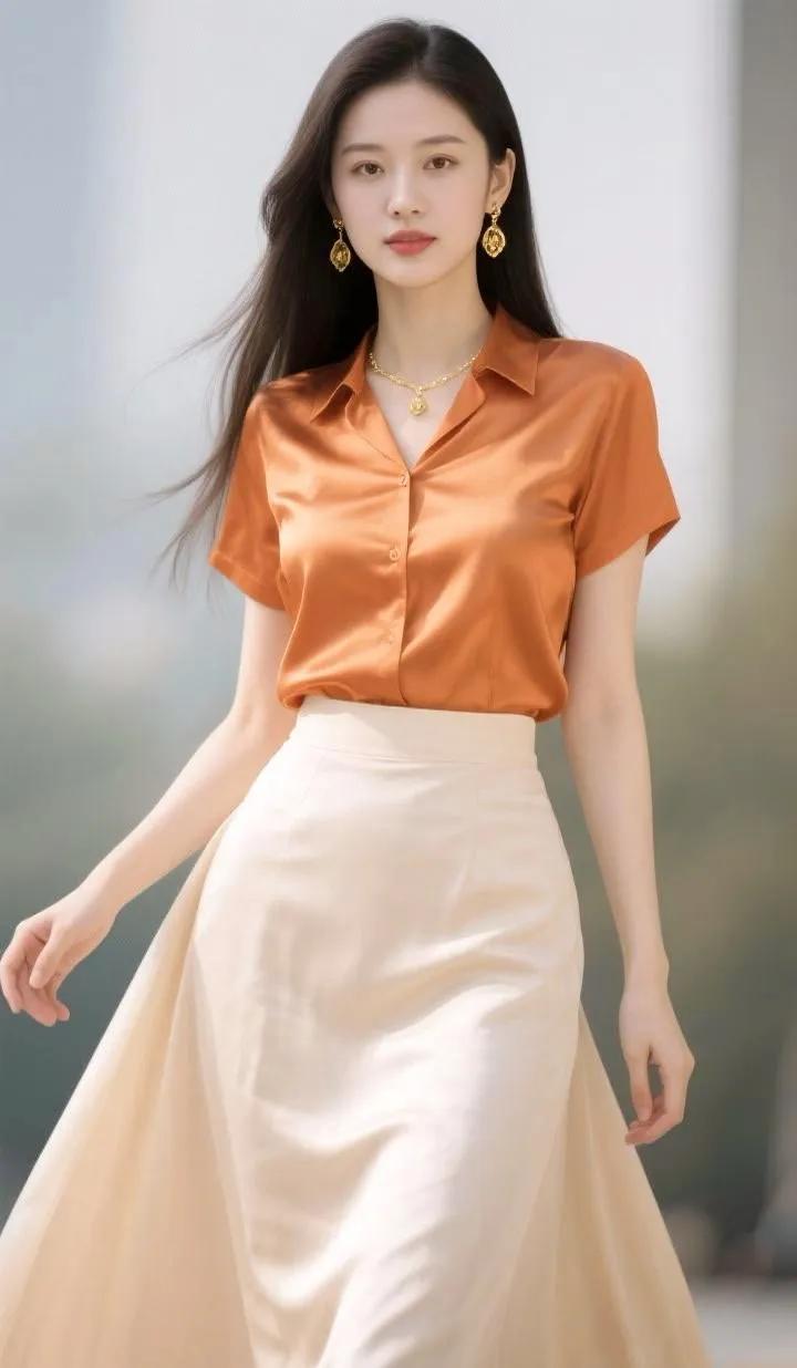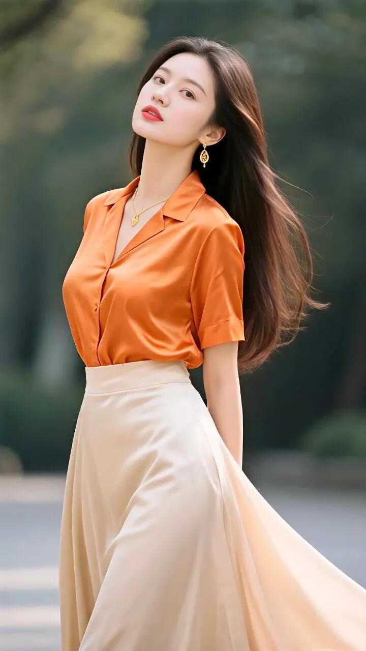 优雅橙衣搭配长裙,秋日里的一抹亮色