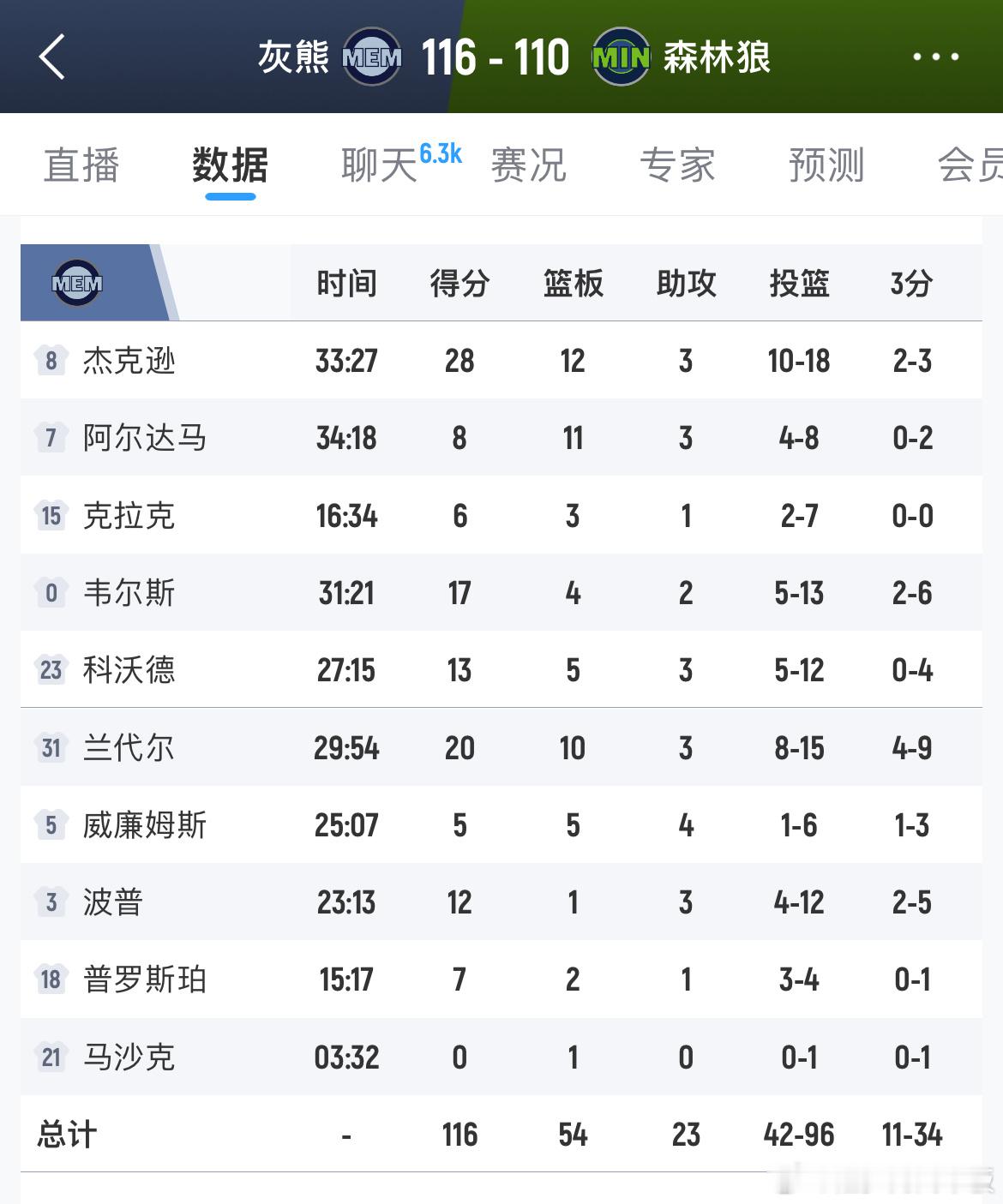 莫兰特,华子缺阵!森林狼110-116不敌灰熊灰熊战绩13胜14负,已追平勇士👀