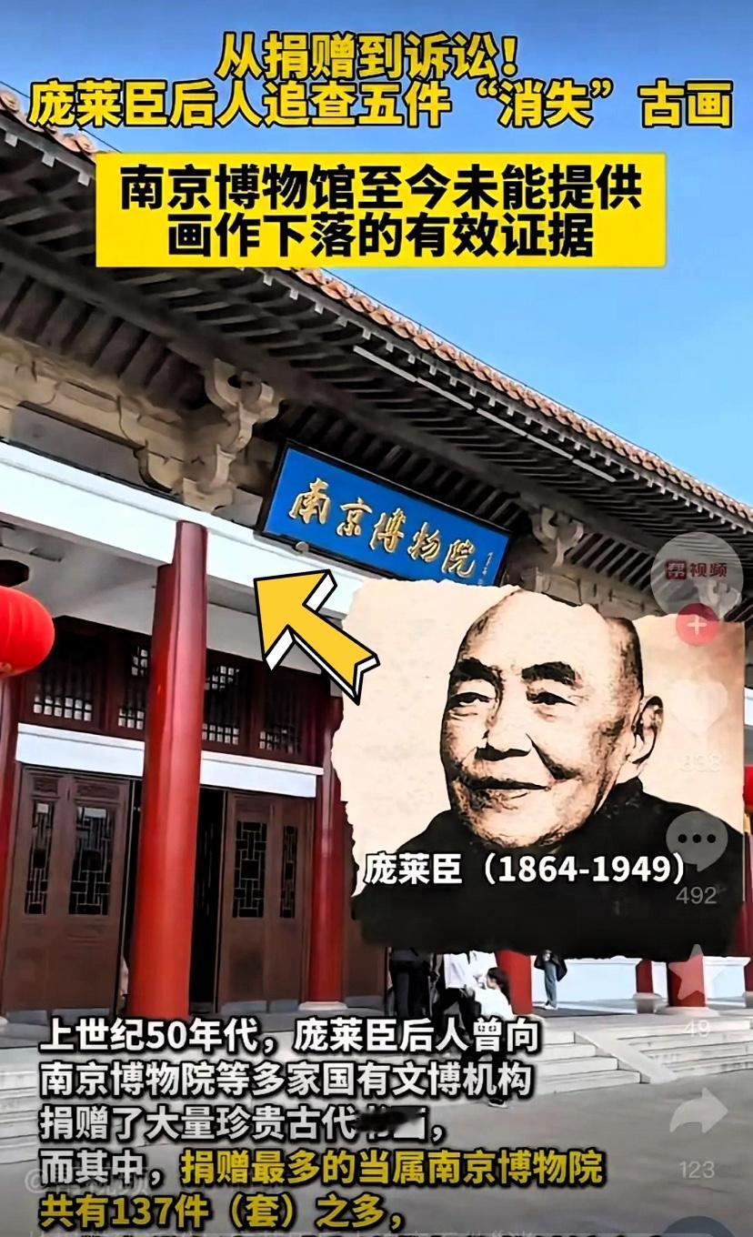 南京博物院这事儿! 3个细节越扒越寒心, 越挖越让人没法平静! 137件珍贵古画是人家庞家后人无偿捐赠的,怎么就悄无声息少了5件?更离谱的是,其中一件居然还被挂上了拍卖会! 梳理了几个关键细节,每一个都透着不对劲:首先,现身拍卖会的仇英《江南春》,之前被南博认定为“伪作”,还说已经做了“划拨、调剂”处理,要不是庞氏后人留心追查,这事儿恐怕就石沉大海了。 其次,更诡异的是,很多捐赠藏品被标上“伪作”“假的”字样,可边上又偷偷写了“资”和“存”,转头这些画还在展览中被夸是“最好的藏品”,这前后矛盾的操作实在说不通。 最让人心寒的是,庞氏后人想了解捐赠文物的去向,却被以“不是捐赠本人”为由拒绝,曾孙女庞叔令甚至气到突发心脏病,到最后都没弄清自家捐赠的宝贝去哪了。 要知道,上世纪50年代庞莱臣后人捐赠的137件(套)古画,都是实打实的文化瑰宝,不少都成了南博的镇馆之宝。人家无偿捐给国家,是想让这些宝贝被好好保护、供大家欣赏,可不是让某些人暗箱操作的! 企业有年度审核,博物馆的藏品涉及的文化价值和历史意义远超普通资产,难道不该有更严格的监管吗?发现文物流失,不该立刻立案追查吗?这些国宝是全体国民的财富,难道就这么不明不白消失了?谁来给庞家后人和全国人民一个交代?