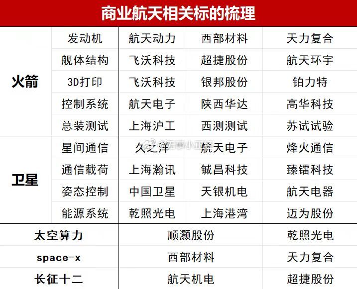 转:很多领导问空天怎么理解,毕竟这不止是纯产业问题,作为A股顶级赛道理解的卖方,简单写下1、次顶级0~1方向无疑(不排除0~10),仅次于AI,与22机器人同级(那会儿我们也是旗手),远大于之前稳定币之类。突然10X的市场空间(太空算力,海外加大开启,比卫星和传统火箭市场大10X),更长期走向星外移民。供给剧变,我们可回收、火箭不断推进。催化不断、进展不断。2、0~1区间标的选择大家很喜欢扩散,其实更应该坚持逻辑核心。0~1更多是比逻辑,位置低的涨两天位置高了就失去吸引力了。所以我们更倾向于坚持 西部材料、顺灏科技、航天动力、普天科技 等这类逻辑核心,发散也应该发散逻辑更好的,而不是位置低的。3、产业进展真挺有意思,一起不断跟踪,多探讨多学习