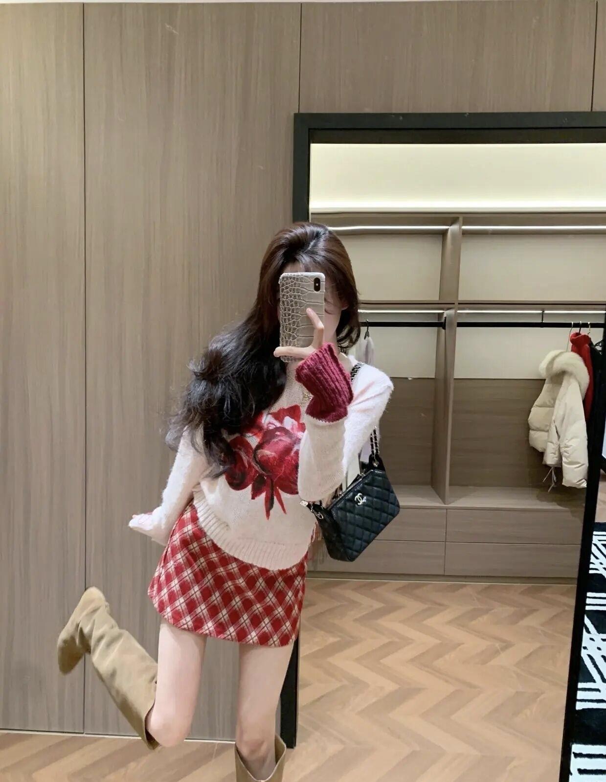 逛街的快乐就是在试衣间解锁新穿搭,红格纹短裙搭长靴,复古甜妹风拉满啦