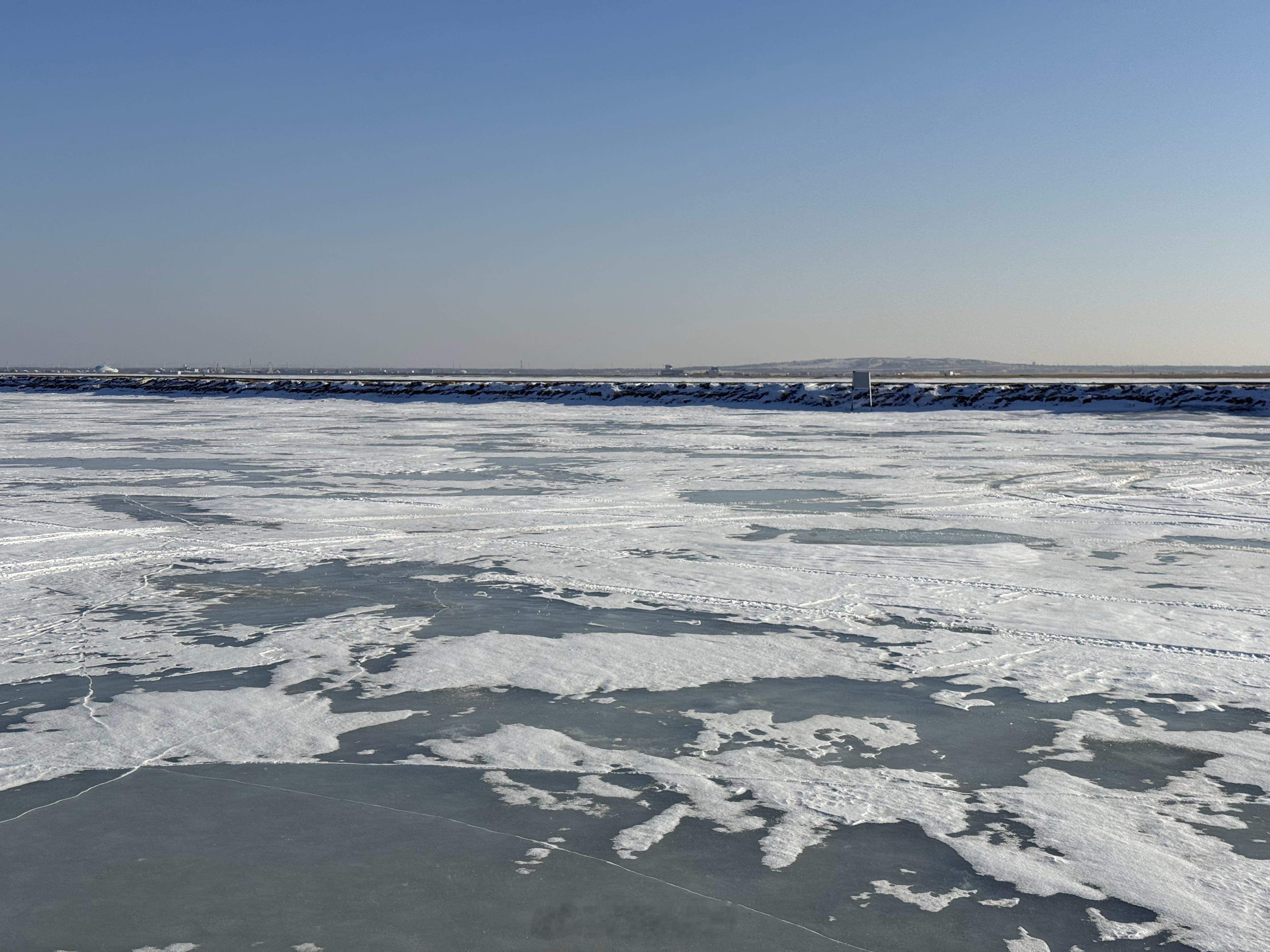 朋友们我现在在一个结冰的湖面上摄像跟我说冻的很结实,可我看图二明明有裂隙啊…现在跑来得及吗