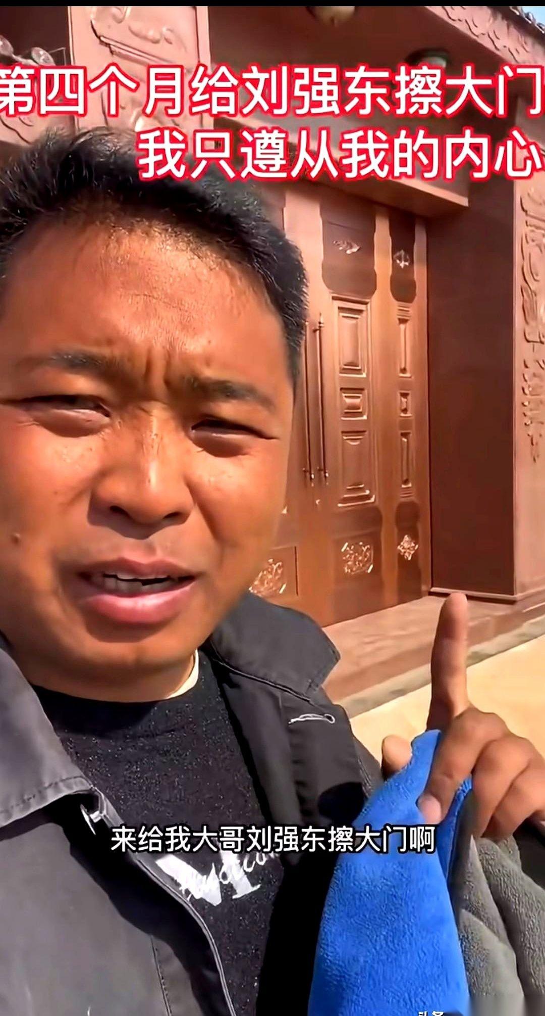 有人靠擦刘强东老家的大门,火了。 每个月都去,风雨无阻,拿着抹布水桶,吭哧吭哧擦