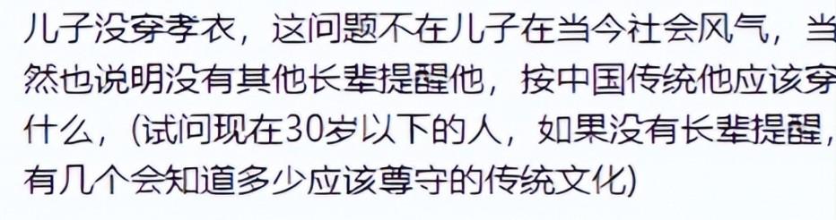 何晴离世,独子许何没有表露悲伤状态居然都还遭网暴! 无聊的人真不少。各地风俗不一样,黑色服装就是葬礼的颜色。北京冬季天气寒冷,穿羽绒服很正常。 只要我活着的时候,孩子对我尽了孝心,办后事的时候,他哪怕穿个红色羽绒服,我都不会怪他!父母活着不尽孝,死了你穿1000件孝服有啥用啊? 人在这样悲痛的时刻是流不出眼泪的,只能机械的按照人家要求执行!请那些人口下笔下手下留情留德!