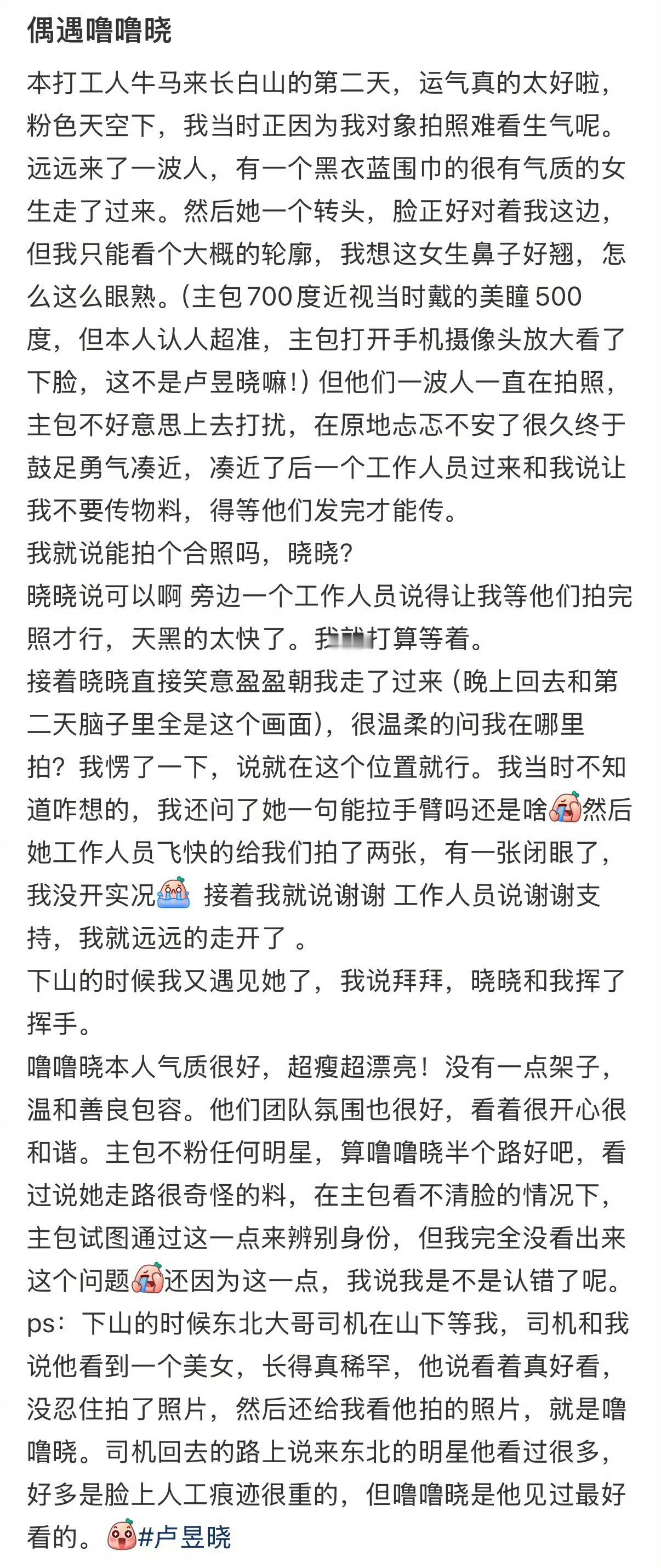 【卢昱晓】好美好的偶遇,看着这张笑眼盈盈的漂亮素颜,处在皑皑冬雪里好像也感觉暖融融的了卢昱晓在东北跳爽了