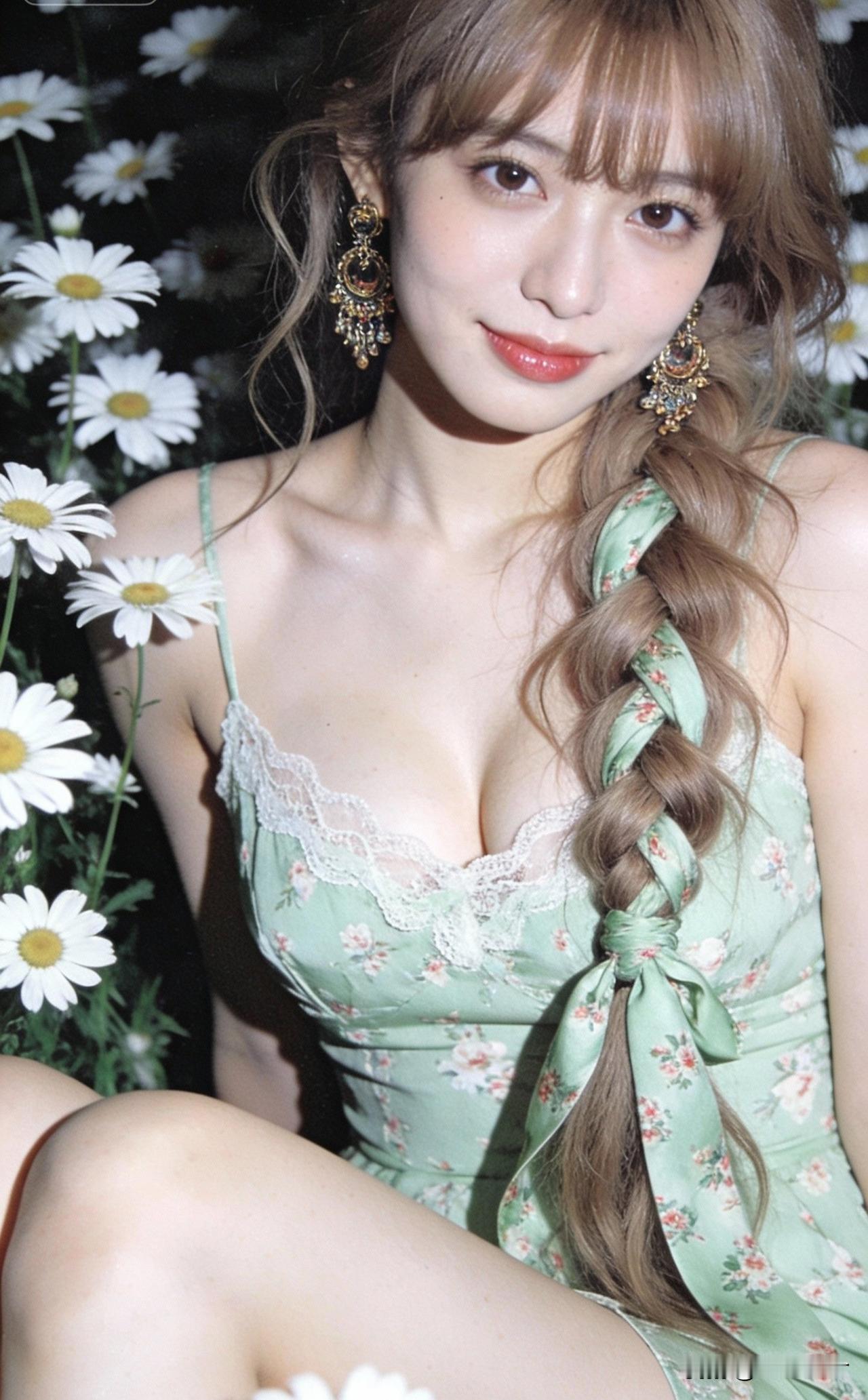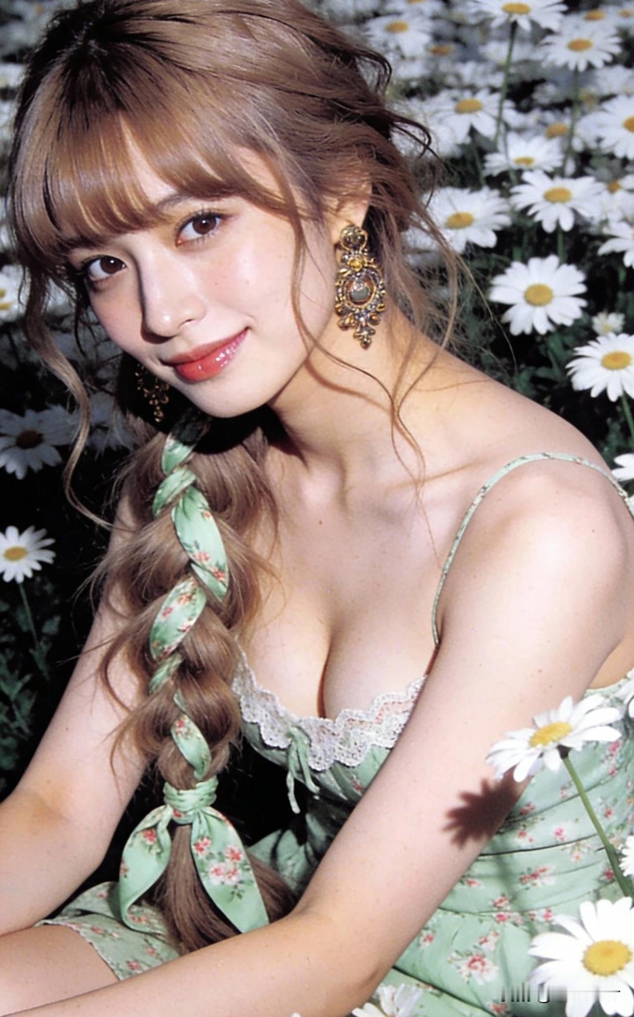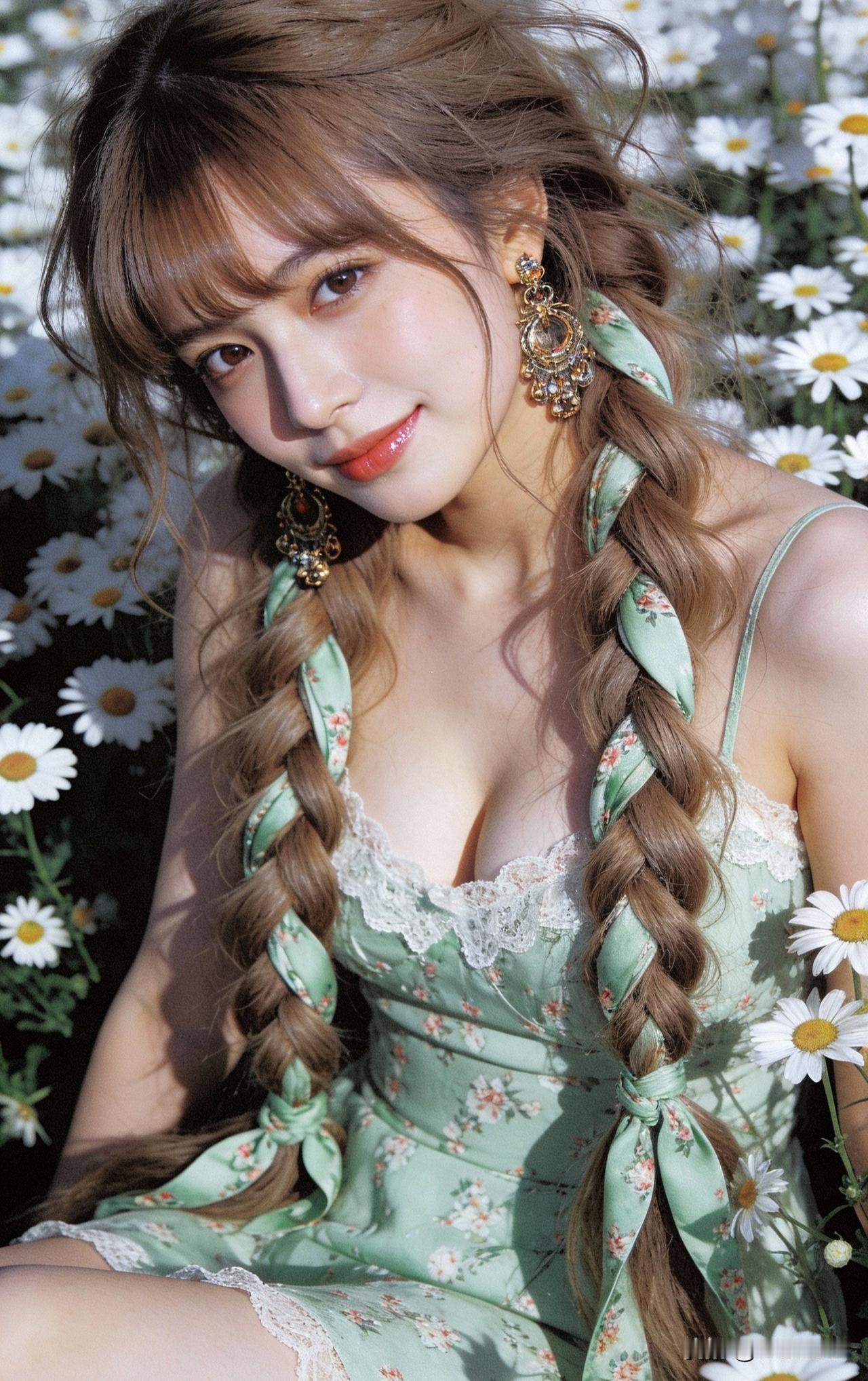 夏日花海中的甜美少女,轻盈的裙摆随风飘扬,仿佛置身于童话世界。