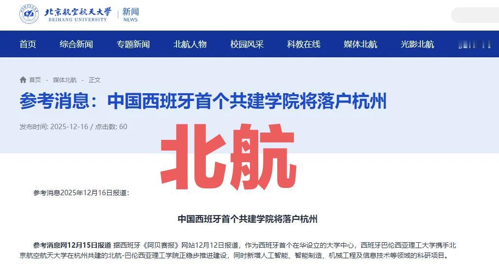 又是北航,预计2026年招生!北航与西班牙巴伦西亚理工大学这对“科研CP”,在杭州携手共建的北航 - 巴伦西亚理工学院的建设正如火如荼地稳步推进。同时,该合作办学还新增了人工智能、智能制造、机械工程及信息技术等领域的科研项目,仿佛给科研的“弹药库”又添了不少“弹药”。巴伦西亚理工大学也因此成为首个在中国设立校区的西班牙高校。 北航 - 巴伦西亚理工学院预计在2026至2027学年正式“开门迎客”,开启教学工作。校区设计容纳规模为2000名学生,学术项目打算开设4个本科专业、6个硕士专业及4个博士专业,主要聚焦在通信工程、计算机工程与人工智能、航空航天工程这三大领域。 除了与西班牙合作外,北航和法国名校在杭州合办的中法航空学院已经招生一些年了,属于北航正经二级学院,主要是航空相关的专业。 中法航空六年能读完本科+硕士,中、法、英三语教学(法语零起点也能报),毕业拿北航本硕证+法国认可的工程师文凭,学费不贵每年只有4万,校园环境和实习资源都不错。当然了,分数也不低。