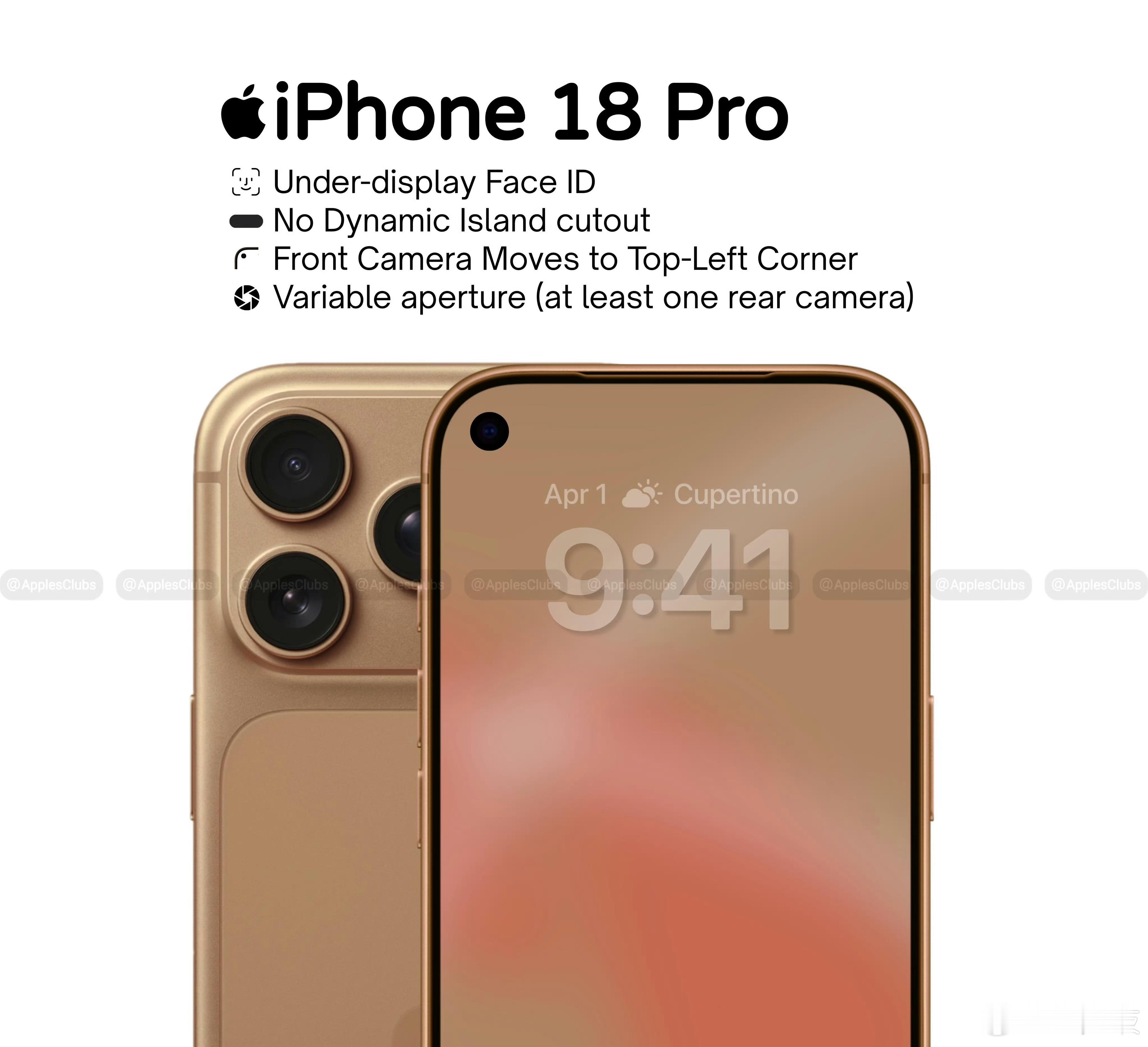谣言成真了?!iPhone18Pro或摒弃药丸状挖孔日前,最新爆料称苹果iPhone 18 Pro和iPhone 18 Pro Max将迎来重大外观变革,计划彻底摒弃“灵动岛”药丸形挖孔,转而采用左上角单打孔前置镜头与屏下 Face ID 技术。大家一起来感受下!都是安卓玩剩下的!!!iPhone18Pro或摒弃药丸状挖孔