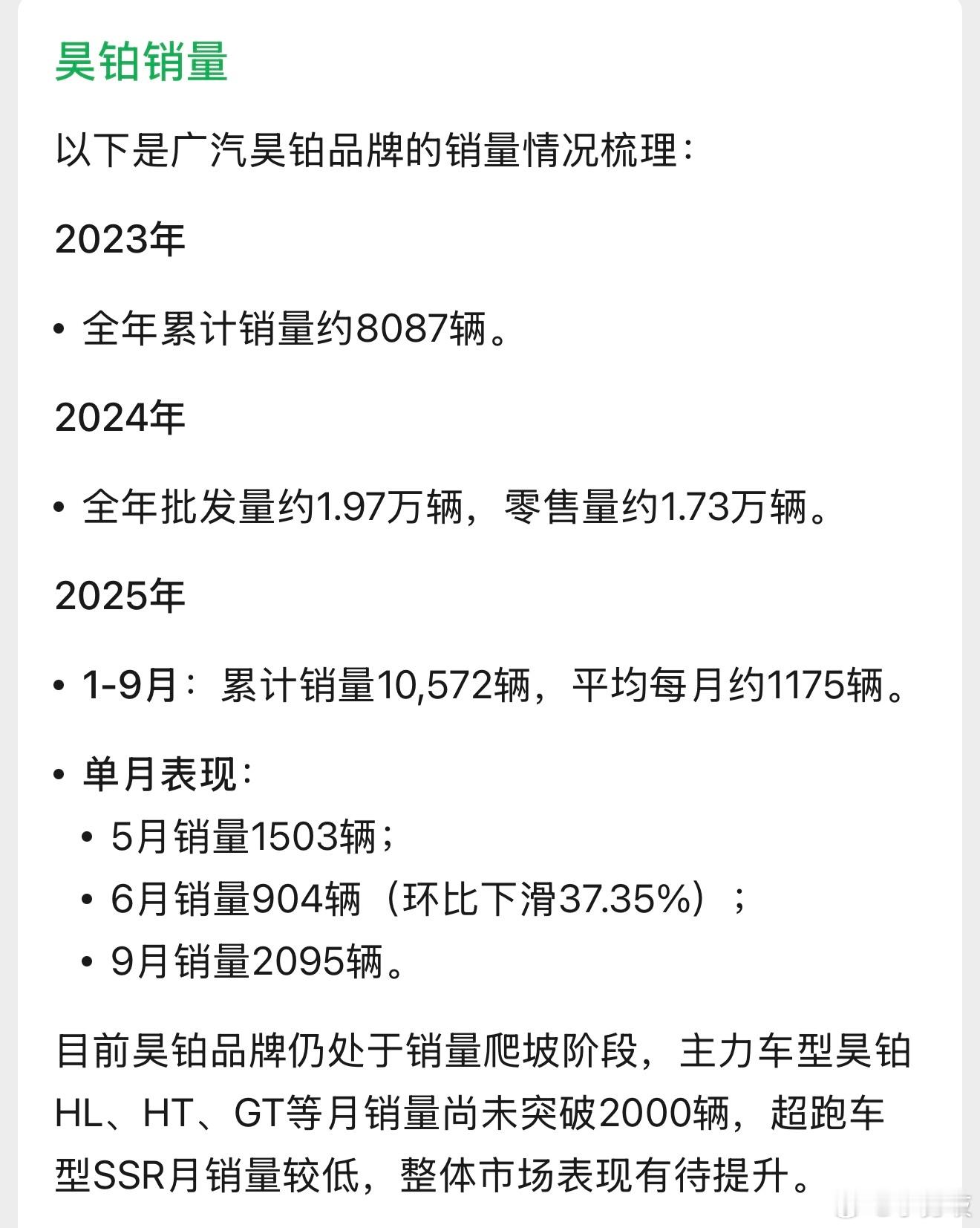 昊铂完了?!广汽开启自主品牌BU改革,昊铂埃安渠道融合运营广汽集团12月18日官宣,锚定“番禺行动”改革计划,正式启动自主品牌BU(Business Unit)改革,通过深化内部资源整合与渠道融合运营,持续锻造面向未来的核心竞争力。通告中说,作为改革落地的关键抓手,昊铂埃安BU率先完成组建,两大品牌纳入同一事业部统筹运营;与此同时,传祺BU也已进入筹备落地阶段,再加上与华为乾崑联手打造已独立运营的启境品牌,广汽集团正以改革为战略牵引,聚力破局,开拓高质量发展新路径。昊铂埃安BU成立后,昊铂与埃安品牌的渠道将融合运营,昊铂品牌车主的服务权益和服务品质不会改变,服务便利性将大幅增加。广汽集团对外称,在汽车行业深度变革、市场竞争日趋白热化的背景下,资源共享与协同发展已成为企业构筑核心竞争力的关键路径。据悉,埃安来自传祺,而昊铂来自埃安,三者均为广汽集团自主乘用车品牌,分工覆盖燃油、主流新能源、高端新能源赛道。昊铂曾在2024年升级品牌标识,强化科技豪华属性,填补广汽高端新能源空白,但仍在埃安体制框架之内,并没有像埃安一样有独立的体制和胎体。可惜的是,定位高端的昊铂,并不被市场买单,销量不及预期。广汽集团销量下滑主因是行业竞争加剧、自主品牌转型调整,叠加合资品牌燃油车基本盘承压,前三季度集团净利润亏损43.12亿元,已进入“战时状态”推进转型。在新能源时代的机遇下,广汽集团的改革无疑是一次必要的尝试,是否能在这场改革中真正实现资源整合与管理效能提升,如何将两个品牌的协同效应转化为市场竞争力,将是一个充满持续挑战的课题!