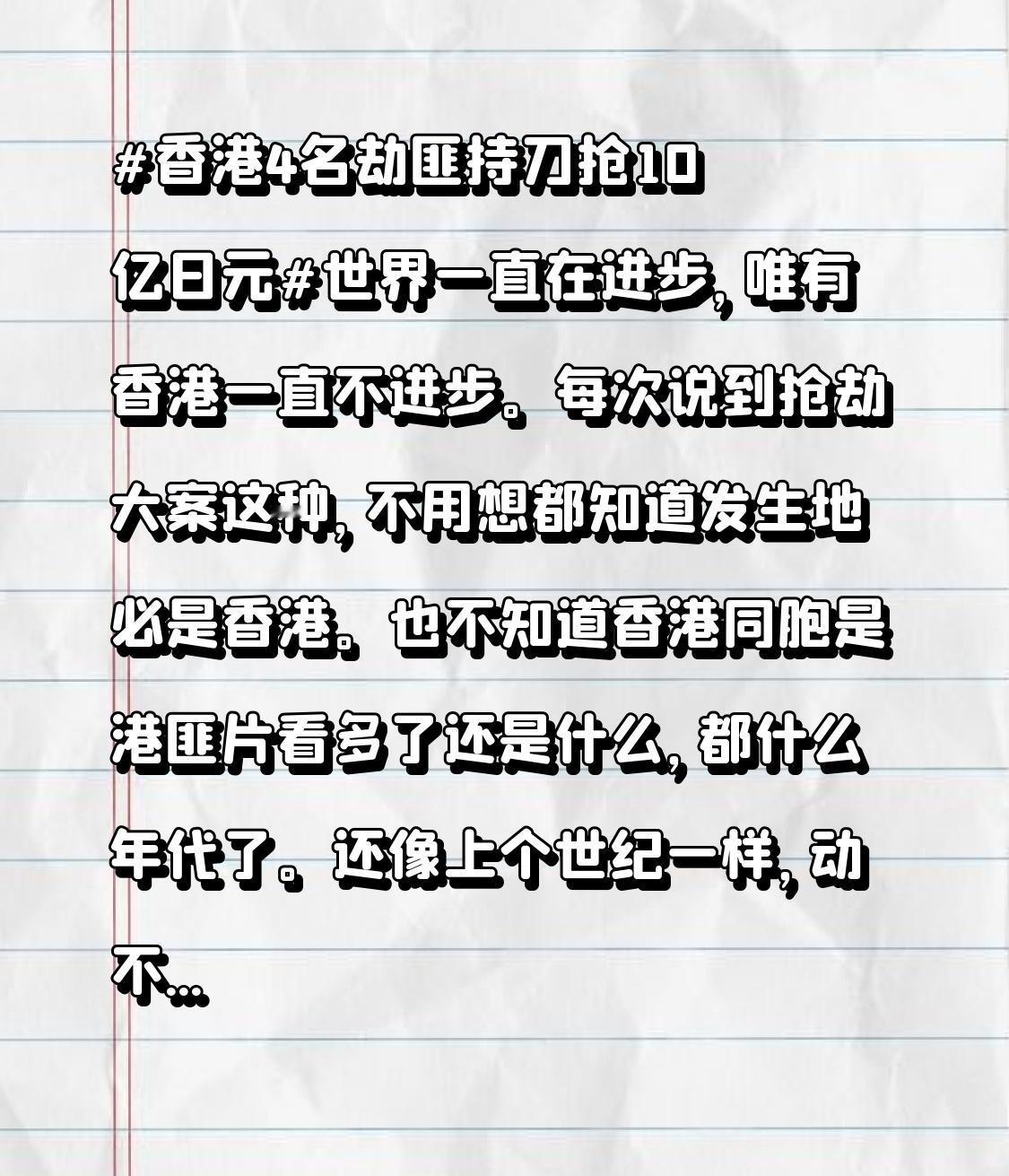 也不知道香港同胞是港匪片看多了还是什么,都什么年代了。还像上个世纪一样,动不动就抢劫。 真以为抢了就跑的了吗?别傻了,收手吧