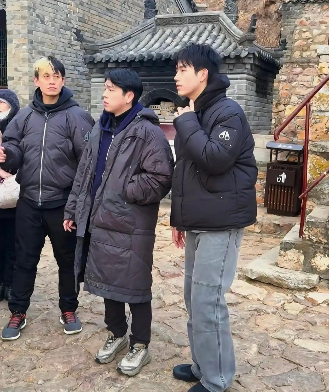 陈凯歌的27岁大儿子陈雨昂和25岁小儿子陈飞宇到大孤山祈福,兄弟俩站在一起,颜值