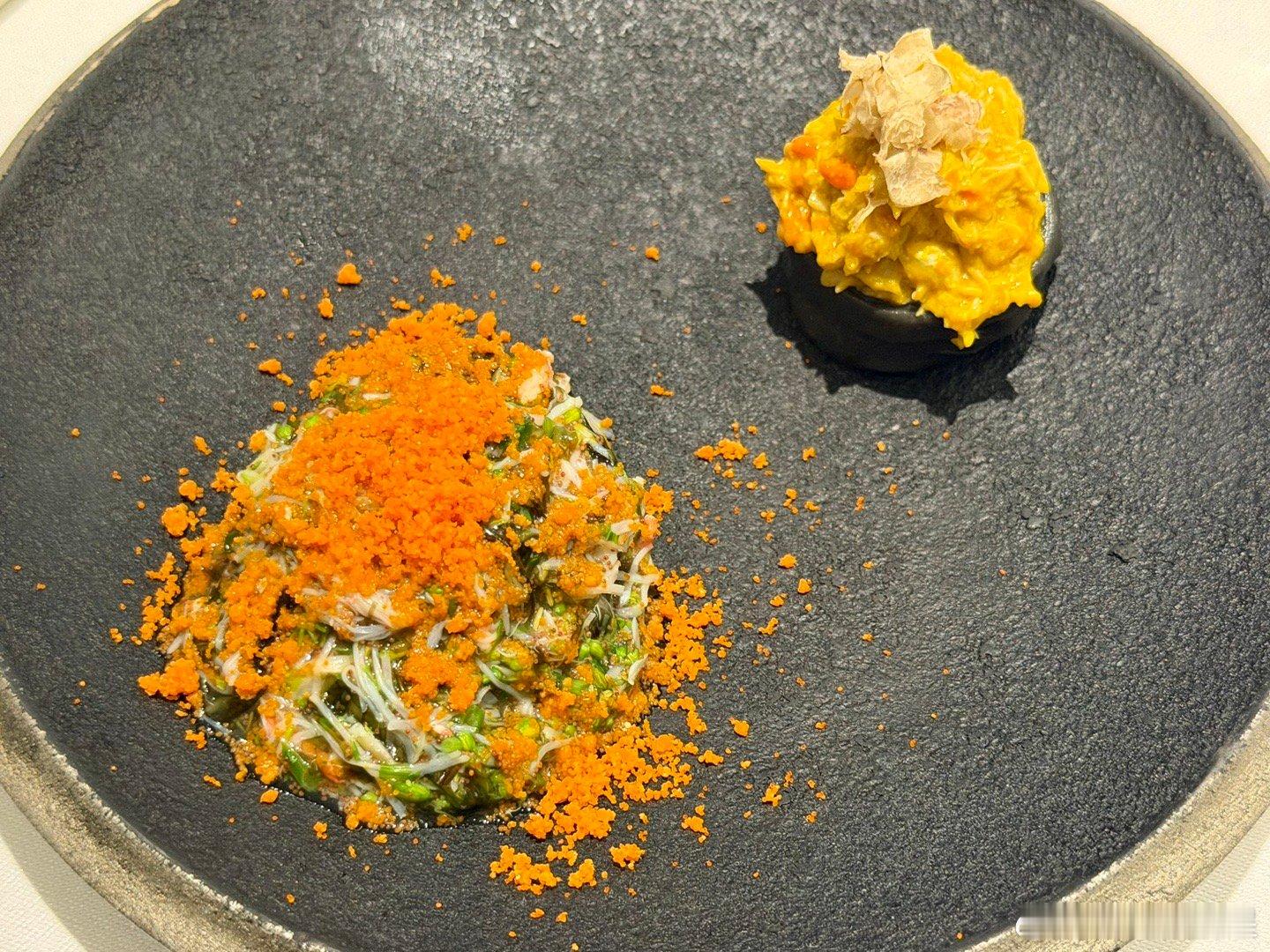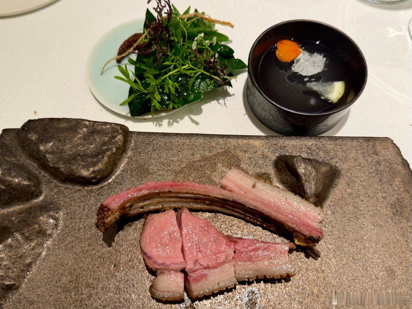 Levo,日本金牌店。这家是富山县的名店,用西洋做法料理富山特产,水平极高。说菜,首先是两个虾,很香的车虾和咸香的沙拉甜虾(图1),配的饮料是柠檬草&生姜+松叶的气泡水。第二个前点是比较咸的鱼子酱点心和淡香的脆皮炸牡蛎。第三个前点是40天熟成Levo鸡腿,上面是芥末萤乌贼,还有淡而鲜美的野鸡清汤。第四个前点是石斑鱼生鱼片和鸭酱的点心,淡香,有点干。配的饮料是绿茶+生菜+山萝卜&佩科里诺奶酪+法连草。图2是前菜“农福罗马涅利亚”,主打狸子火腿、生菜及蔬菜泡沫。狸子火腿味道很冲,果然是野味,只能说是有特色。配的饮料是莲藕&杜仲&豆蔻+欧芹。图3是月轮熊掌,和雪蟹、河蟹一起做的,做的还行,但几乎没啥熊掌肉,也难怪… 那东西太珍稀了。饮料配河原决明+完熟山椒。图4是鳗鱼手卷,配苹果和小熊生肉,生熊肉很有嚼劲,挺好的。配的饮料是竹叶+莳萝。图6是“玉响琥珀”,用爱知鸡蛋、黑松露、熊肉的呷哺呷哺,调味用富山芝士酱。非常香的一道菜,熊肉呷哺和和牛一样好吃。配的饮料是薏米&孜然+柠檬水。图7是用月轮熊内脏做的香肠,里面有熊肚子啥的,旁边是奶油泡沫、蘑菇和鱼子酱,淡咸香口,不错。饮料配红薯&枣&肉桂+柚子。图8是大门素面,鹿血鸡汤山椒面,鲜香美味真好喝,终于体验到古人喝鹿血的感觉了。配的饮料是砰砰茶&五香粉+薄荷+玉米。图9是小野猪肉,相当好吃,烤的香,加一点盐,非常好,肥肉瘦肉都好吃,野猪好赞。配的饮料是红茶&丁香&黑胡椒&香草+橙子。图10是青头鸭和鸭血酱,旁边是热菜,香甜可口的农福沙拉。配的饮料是菊芋&桑叶+通卡豆。图11是甜品,干安坡柿和两种冷芝士,相当的香甜可口,风味上乘的甜品。配的饮料是三河味醂自制蒸馏糖浆&香菇+柠檬。之后是一道巧克力和草莓做的圣诞糕点,最后的甜品是日本栗、咖啡饼干和白松露。极赞的一顿饭,出类拔萃,各种前所未吃,把野味的日式西做发挥到了极致,令人难以忘怀,果然是金牌店,超越米其林三星的水准。图5是和Levo主厨合影。谢田的非米其林之旅