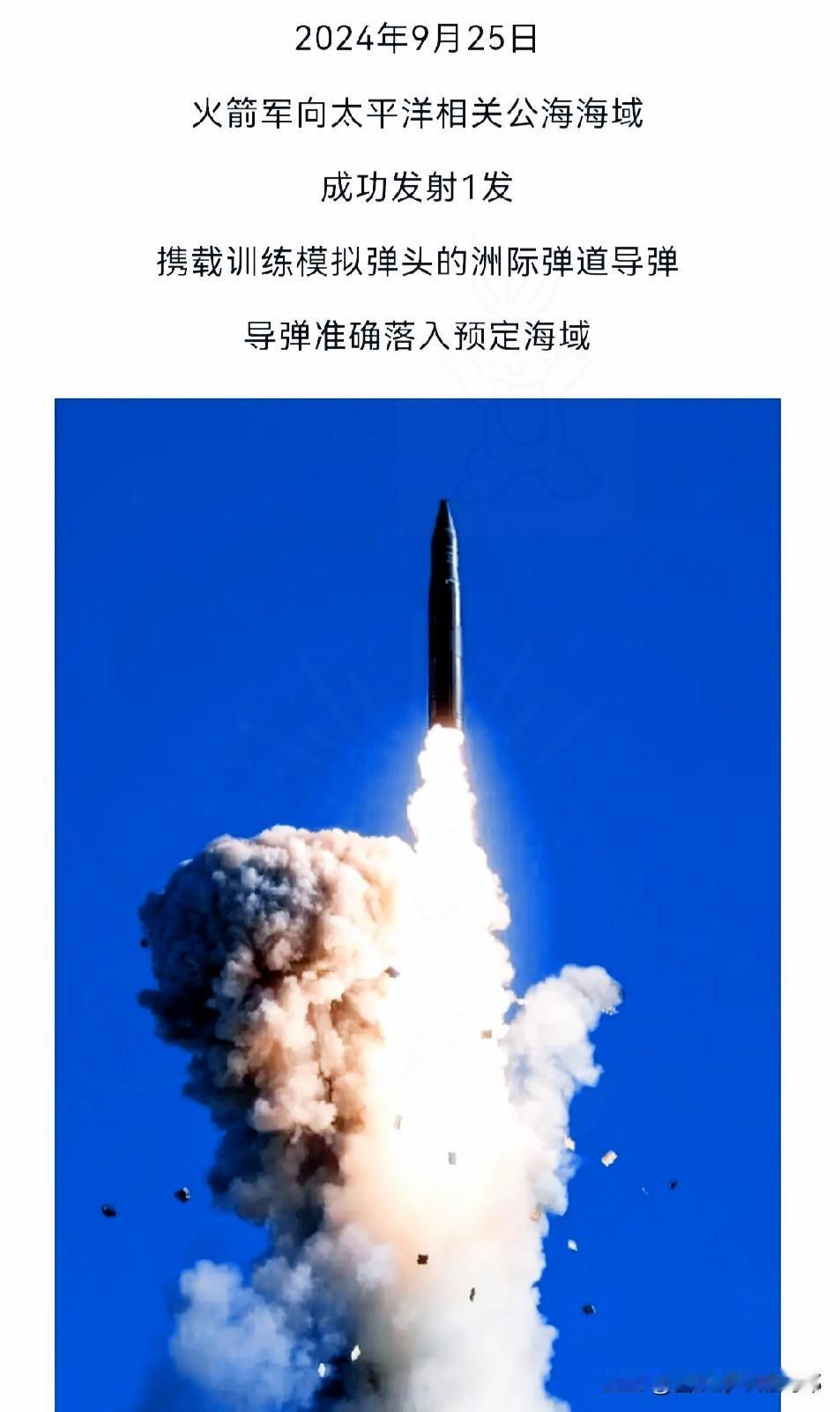 一等功,实至名归! 去年那枚跨洋亮剑的洲际导弹东风洲际导弹 ,蕴含着中国军人最硬核的坚守! 2024年9月25日,那枚直奔太平洋公海的洲际导弹,不只是一次训练发射,更是中国战略威慑力的硬核官宣。带着训练模拟弹头跨越万里,精准扎进预定海域,火箭军某导弹旅发射二营凭这波“万里点穴”的操作,稳稳拿下一等功,这荣誉背后全是实打实的硬功夫。 别觉得“成功发射”是理所当然,二营的底气藏在50多年的坚守里。从组建到现在,他们历经多次改革换型,装备更新了一代又一代,但备战打仗的劲头从没松过。执行30多项任务,细化100多条训练标准,不是没事找事,而是为了紧急出动时能快上数秒——现代战场分秒定生死,这多出来的几秒,就是决胜的关键,是大国重器的“反应速度”。 更让人佩服的是他们的较真劲儿,连续6年获评军事训练一级单位,这可不是靠运气。火箭军的训练从不是“走过场”,隐蔽伪装、快速占领阵地、应对各种突发特情,每一个课目都按实战标准来。二营把“精准”刻进了骨子里,导弹发射的每一个流程、每一个操作,都经过千锤百炼,这才换来“万里命中”的绝对把握。 这枚导弹的意义,远不止一次训练成功那么简单。在复杂的国际环境下,它是最直接的“安全宣言”——中国从不主动挑事,但绝不怕事,我们有能力、有底气捍卫国家主权和领土完整。它不是用来挑衅的工具,而是守护和平的“压舱石”,让那些妄图挑衅的势力不敢轻举妄动。 很多人只看到导弹升空的壮美,却没看到背后军人的付出。他们在崇山峻岭中枕戈待旦,在无人区里默默坚守,把青春和热血献给国防事业。二营的一等功,是这支导弹劲旅的荣耀,更是千千万万中国军人的缩影——正是因为有他们“箭在弦上、引而待发”的坚守,我们才能安享和平生活。 大国重器的威慑力,从来不是靠嘴说,而是靠一次次实打实的实力证明。二营的故事告诉我们,真正的安全感,是无数人用细节打磨、用岁月坚守换来的。 你觉得军人身上最让人敬佩的品质是什么?如果有机会,你想对这些守护家国的军人说些什么?评论区聊聊你的看法~MCN双量进阶计划