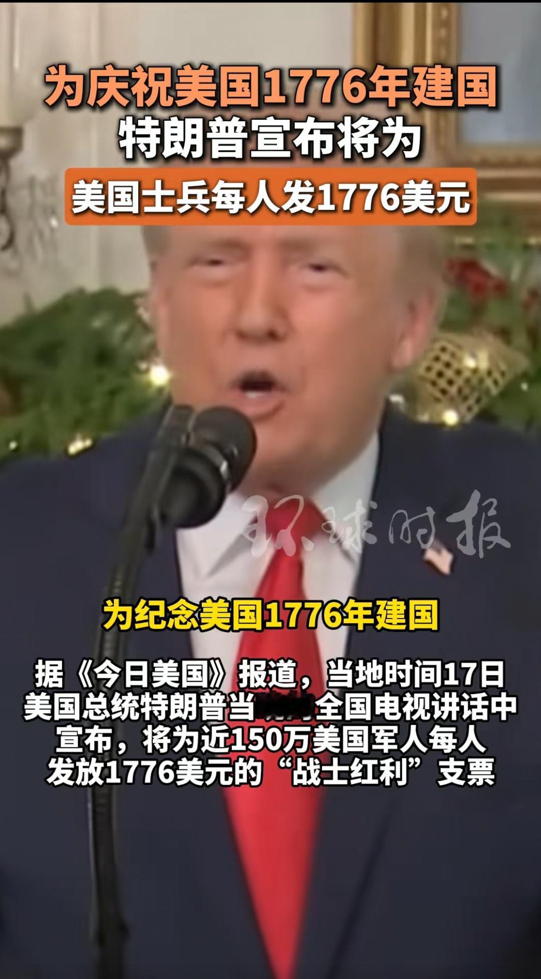 为庆祝美国1776年建国,特靠谱为每一位美国士兵额外发放1776元奖金! 美国大概有150万名军人会享受这个额外的奖励,折合人民币约188亿,特靠谱说,这个钱都是在关税策略中赢得的利润。 真别说,这一招还挺高的,首先收获了大批的支持,其次普通民众确实看到了这个钱花在了哪里,在挣的是哪里。 各位是怎么看的?欢迎评论区留言。