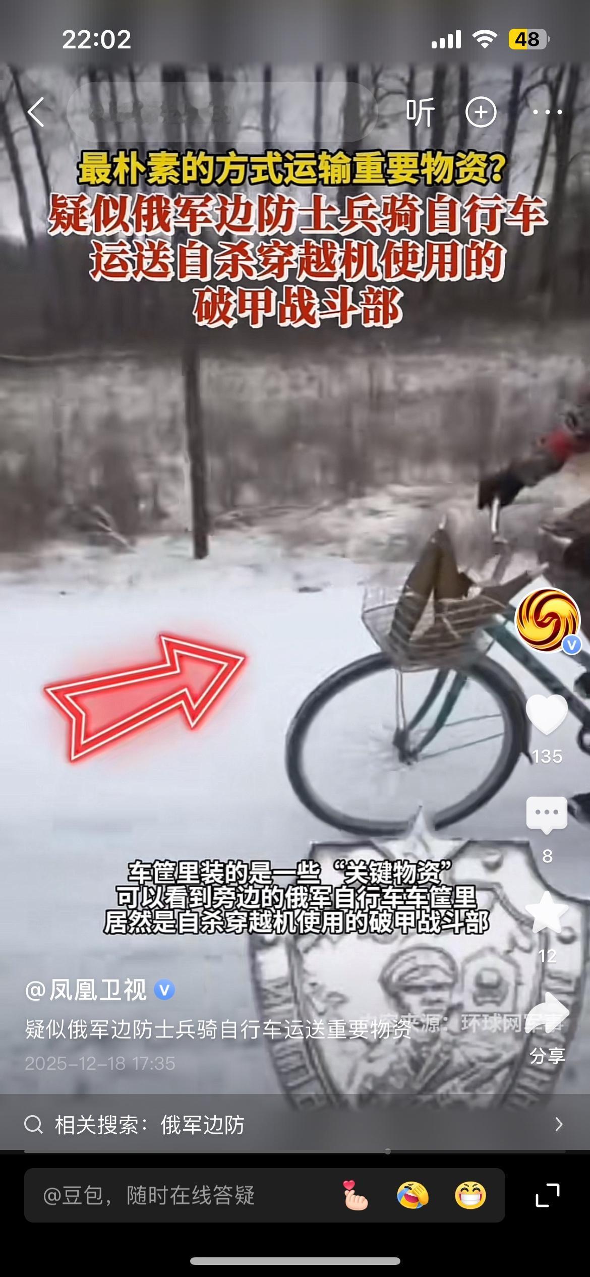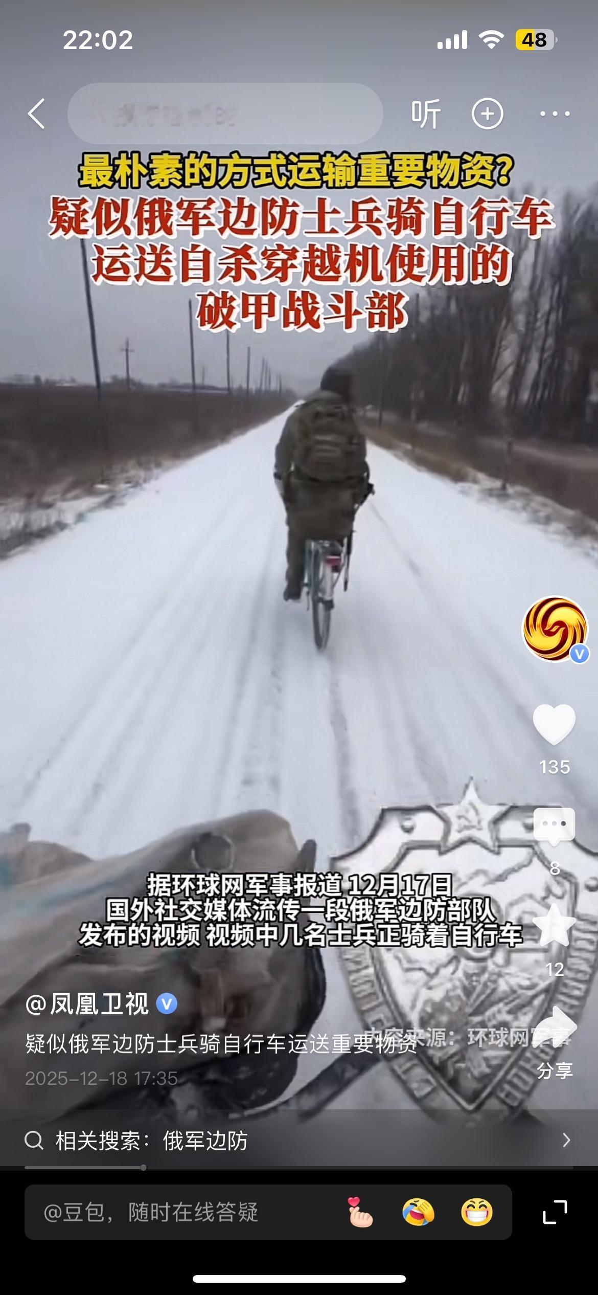 那能怎么办?仗都打到这个份上了,能运上去一点是一点,单兵骑自行车运输真的被无人机轰炸,损失也就是几枚弹头和几个单兵而已。 如果派一辆卡车拉一车的破甲弹头,一但被无人机摧毁,把损失的弹头数量就很巨大了!只有采取这种分散运输保证运输成功率了!毕竟论战争的人海战术,俄罗斯也是祖师爷!