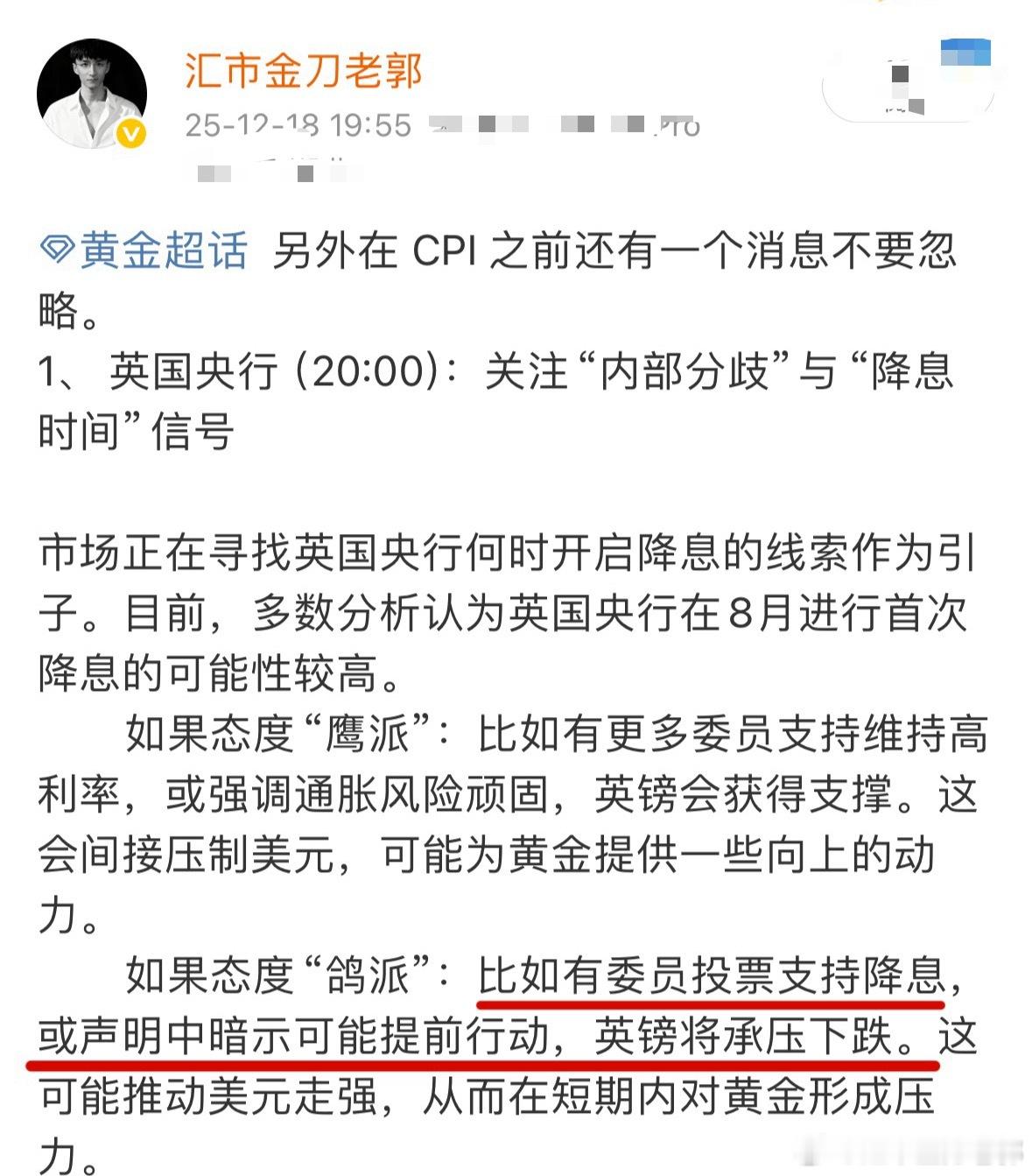 黄金 另外在 CPI 之前还有一个消息不要忽略。1、 英国央行(20:00):