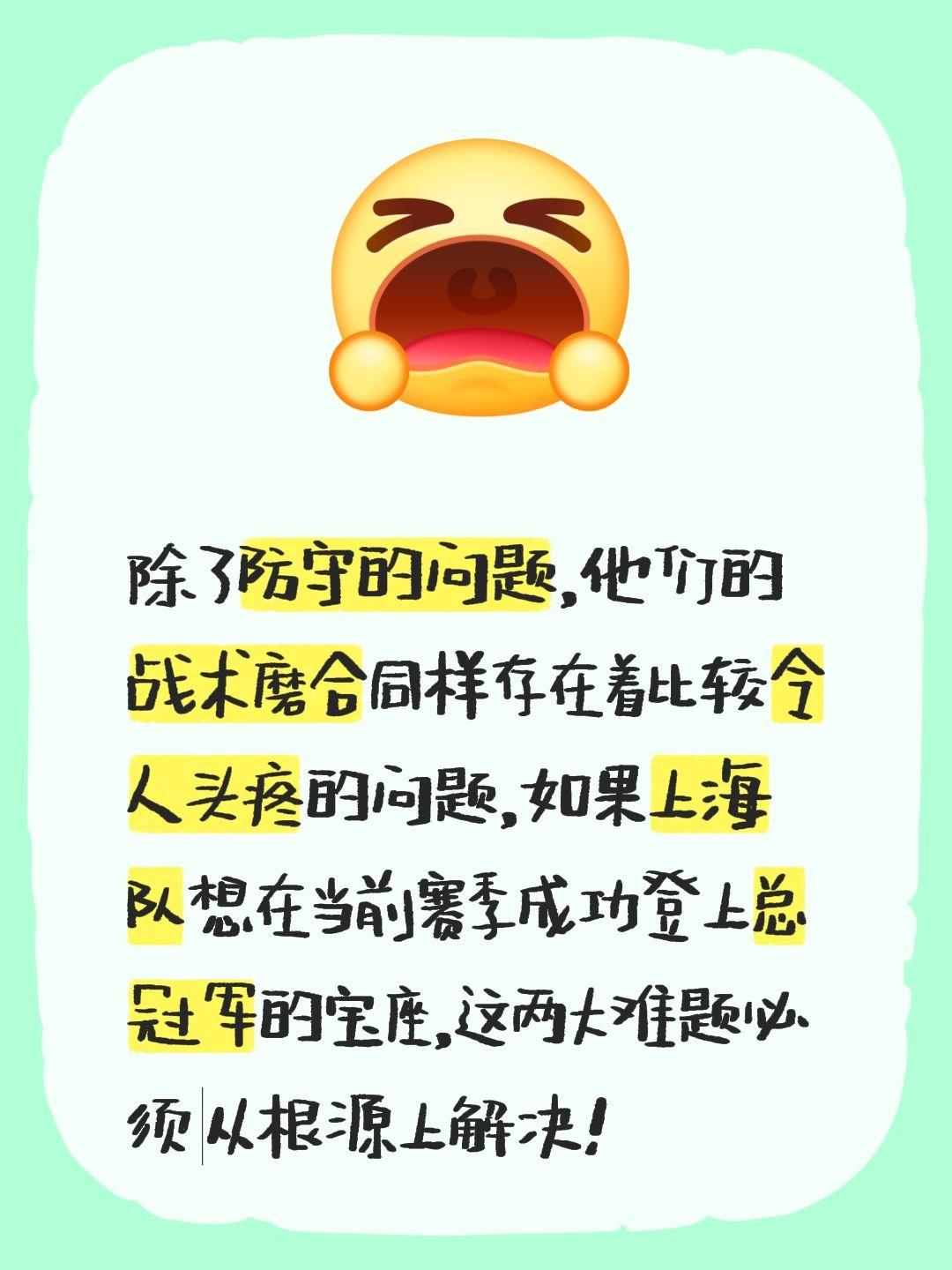 除了防守的问题,他们的战术磨合同样存在着比较令人头疼的问题,如果上海队想在当前赛季成功登上总冠军的宝座,这两大难题必须从根源上解决!