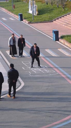 “解释不清了!”四川德阳,两个高中女生趁着课间,在上课的必经路上,用粉笔画了个"跳房子"的游戏,没想到,接下来发生的一幕幕,让人既想笑,又想哭……网友:他们好像跳错了,因为没有跳回去;他们好像又没跳错,因为好像回不去了。 四川德阳的水泥校道,平时就是被大家的鞋底匆匆碾过的背景板,谁也没把它当回事。可就在那个普通的午后,两个女生随手画的歪歪扭扭的粉笔画框,竟成了连接两个时空的“传送门”。 她们也没想着搞什么大创作,就趁着课间那点空档,在去教室的路上勾勒出了跳房子的格子,简单几笔,却在平静的校园里掀起了不小的波澜。 最先被吸引的是一位路过的割草大叔。他手里的活计沉甸甸的,脚步里满是成年人的沉稳和疲惫。 可当目光落到地上的格子时,他脚步猛地顿住了。那双平时只盯着杂草的眼睛里闪过一丝迟疑,在格子前犹豫了两秒,像是瞬间想把年纪抛到脑后,但终究看了看没干完的活,叹口气大步跨了过去。 那没落下的一脚,成了这场小插曲里唯一的遗憾。 很快,下课铃响了,一群高中生像“神兽”般涌了出来。比起成年人的权衡利弊,这群少年全凭本能找到了童年的感觉。 一个男生书包都没放下,眼睛一亮就冲了上去,单脚起跳、双脚落地、转身捡石子,一套动作行云流水,全是刻在DNA里的肌肉记忆。 旁边围观的同学瞬间炸开了锅,还有人在一旁认真地喊着“犯规了”“压线了”。原本被试卷和分数填满的操场,那一刻竟重叠了旧日街角巷弄的热闹影子。 最让人动容的,不是精力旺盛的孩子们,而是那些平时习惯板着脸的大人。学校的保安师傅,平时站在校门口眼观六路,就为了抓违纪学生,一脸严肃。 可在这串格子面前,他彻底“破防”了。监控拍下的画面里,他先是习惯性地左顾右盼,像个怕被老师发现的孩子确认安全,然后才小心翼翼地抬起穿制服裤子的腿,略显笨拙地跳进格子里。 动作僵硬得让人发笑,但跳完后他拍拍裤腿转身巡逻时,嘴角那抹没来得及收回的笑意,分明透着久违的轻盈。 平日里讲究规矩的老师也纷纷“放下身段”。教数学的刘老师一脚没踩稳压线了,不用学生提醒,自觉退到队尾排队,还笑着嚷嚷着“愿赌服输”。 还有位女老师跳得很慢,每一步都像是在确认什么,直到跳到最后那个象征终点的格子,她停下来驻足良久,望着远处的教学楼出神。 那一刻,她眼里或许不是眼前的路,而是身后再也回不去的光阴。 这一幕幕被传到网上后,没专家出来指责扰乱秩序,反而引发了不少共鸣。成都、重庆、杭州的不少学校还纷纷效仿,有的用防水漆把格子画牢,有的甚至专门配了沙包。 在这个大人小孩都被电子屏幕困住,被KPI和分数追赶的年代,这简单的粉笔画游戏,居然打败了昂贵精密的电子设备。 大家才发现,原来快乐根本不需要充值,一块空地、一群人就足够。 网友那句评论说得太戳心了:“他们好像跳错了,因为没有跳回去;他们好像又没跳错,因为好像回不去了。”有人说看到割草大叔跨过去的身影,就像看到了无数次想停下喘口气却不敢的自己;看到保安大叔偷偷跳的那一下,既心酸又治愈。 大家疯狂点赞,不是夸女生画得好,而是借着这个视频,偷偷回望了一眼那个再也够不着的童年自己。 现在的孩子,童年被装在iPad的冰冷玻璃后,触摸的是虚拟像素;而上一代人的童年,藏在磨损的粉笔印里,是粗糙的地面和真实的汗水。 这两个女生无心的涂鸦,不只是一个课间游戏,更像是温柔的提醒:在必须大步向前的成人世界里,偶尔也可以允许自己像个笨拙的孩子,在格子里蹦跶两下。 粉笔格子总会被雨水冲掉、被脚步蹭模糊,但跳跃时的失重感是真的。就像那些老师和保安,跳出格子后,还是要披上严肃的外壳面对生活琐碎,但腾空的那一刹那,他们确实短暂逃离了时间,抓住了那个满院子乱跑的小小身影。 这就够了!