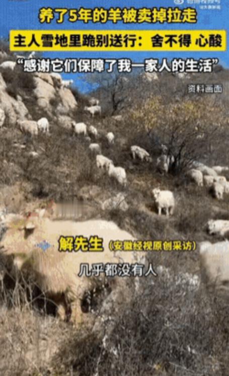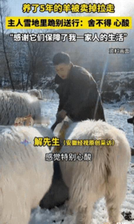 12月14日,山西忻州一名男子将养了5年的羊卖掉,当所有羊都被装上车即将被带走时,男子再也忍不住了,直接跪在雪地上,双手合十,向所有羊送行告别。   那天忻州的雪下得不小,整片土地都被白雪盖得严严实实,寒风刮在脸上像刀子割一样,可比寒风更让人心里发紧的,是解师傅这一跪。   没有多余的铺垫,就是那么直愣愣的一下,解师傅的双膝重重砸在雪地里,积雪被压出两个深深的坑。   漫天飞雪好像都放慢了速度,成了这个成年男人崩溃的背景。他双手紧紧合在一起,对着那辆缓缓启动、装满几十只活羊的卡车,深深低下了头,一拜,再拜,动作里全是不舍。   路过的人看了都有点不解,觉得不就是卖几只羊换钱吗?   再怎么说也犯不上给牲口行这么大的礼。可他们不知道,这一跪,解师傅根本不是跪给买羊的客户看的,而是跪给车厢栏杆后那些默默盯着他的羊。   卡车围栏后的羊安安静静的,不叫唤,只是回头望着解师傅,眼神里满是近乎认命的哀怨。羊这东西看着温顺,其实通灵性得很。   解师傅心里比谁都清楚,它们知道这一走就再也回不来了,也知道这是最后一次看见自己这个天天穿着厚棉袄、陪着它们的主人。   其实早在装车前几个小时,解师傅就已经偷偷红了眼。按照他养羊的惯例,这是给羊喂的最后一顿饭,也算是“断头饭”。   他没像平时那样随便扔一把草进去就完事,而是特意起了个大早,把每一只羊都细细喂饱,又拿出平时不怎么用的刷子,把羊身上沾的干草叶子、结的泥土疙瘩,一点点刷得干干净净。   他想着,要把这些跟了自己五年的“家人”送上不归路,总得让它们体体面面地走。   这份感情,要从五年前说起。那会儿解师傅刚从外地打工回乡,受不了城市的喧嚣,也想守着老家的大山讨生活,就拿出所有积蓄买了二十多只羊羔。   从那以后,忻州大山深处就多了个孤独的牧羊人,每天跟着羊群晨出晚归。   在大山里过日子,最熬人的不是体力上的劳累,而是四下无人的寂静。那种只能听见风声的孤独,能把人逼疯。   是这群羊,在他最难熬的日子里成了他的倾听者。五年来,几千个日夜相伴,当初的二十只羊羔慢慢繁衍成了一大群,它们不只是家里的经济指望,更是填补他精神空虚的血肉伴侣。   可生活从来不会因为感情就手下留情。解师傅之所以不得不卖羊,也是被逼到了绝境。这一年过得格外难,村里为了环保和土地规划,以前能放牧的草场都不让去了。   封山育林是好事,可对靠自然草场养羊的他来说,就是断了粮道。家里没存下足够的草料,看着满圈嗷嗷待哺的羊,他愁得好几天睡不着觉。   更现实的压力还在后面:孩子的学费、家里的柴米油盐、老人看病的开销,一张张单子像催命符一样压得他喘不过气。   一边是相依为命五年的“毛孩子”,一边是要养活的一家人,成年人的崩溃,往往就卡在这种两难里。   不卖,羊会饿死,家也撑不下去;卖了,良心上的坎怎么也过不去,心就像被硬生生剜掉一块。   这种纠结,在装车的时候彻底爆发了。有些羊好像察觉到了危险,平时温顺得很,这会儿却死活不肯上通往屠宰场的踏板。   尤其是几只领头的羊,蹄子像生了根一样,怎么拽都不动,只是一个劲扭头看着解师傅。   解师傅没舍得动鞭子,走到羊的耳朵边上轻声说了几句,不知道是许诺还是道歉。   神奇的是,那羊听完之后,像是懂了他的无奈,低着头乖乖走进了车厢。这种跨越物种的默契,没亲眼见过真的很难相信。   当卡车引擎轰鸣,把他五年的心血都带走的时候,解师傅强撑的坚强彻底碎了。   雪粒子打在脸上生疼,混着眼泪往下滚。他跪在雪地里,拜的是这五年羊群给家里换来的温饱,也是在替自己这个无奈的决定赎罪。   他明明知道羊这一去的结局,可作为主人,除了磕这几个头,什么也做不了。   网上有人说风凉话,觉得养殖就是为了吃肉,没必要这么矫情。理是这个理,可冰冷的商业逻辑,哪能说清人性里的温度。   就像城里卖菜的大爷要盘掉守了一辈子的摊子时,会久久凝视摊位;农村老太卖了攒一辈子的鸡蛋给孙子凑学费时,手会忍不住发抖。   钱要赚,日子要过,但那份割舍不掉的情义,才是人之所以有血有肉的证明。