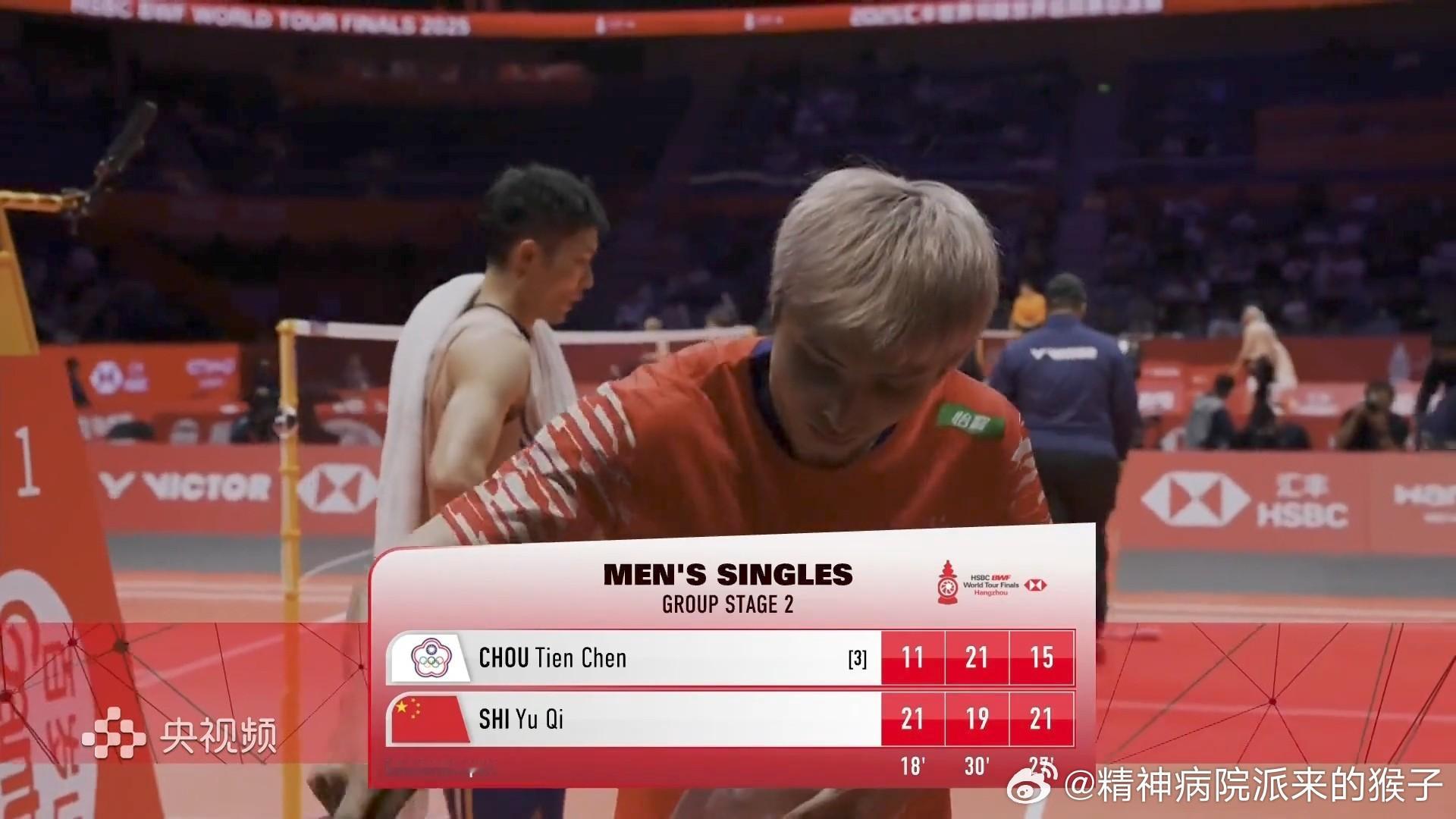 石宇奇2比1周天成(11,-19,15)2025年世界羽联年终总决赛男单小组赛下一场:石宇奇🇨🇳VS奈良冈功大🇯🇵 争夺小组一二位