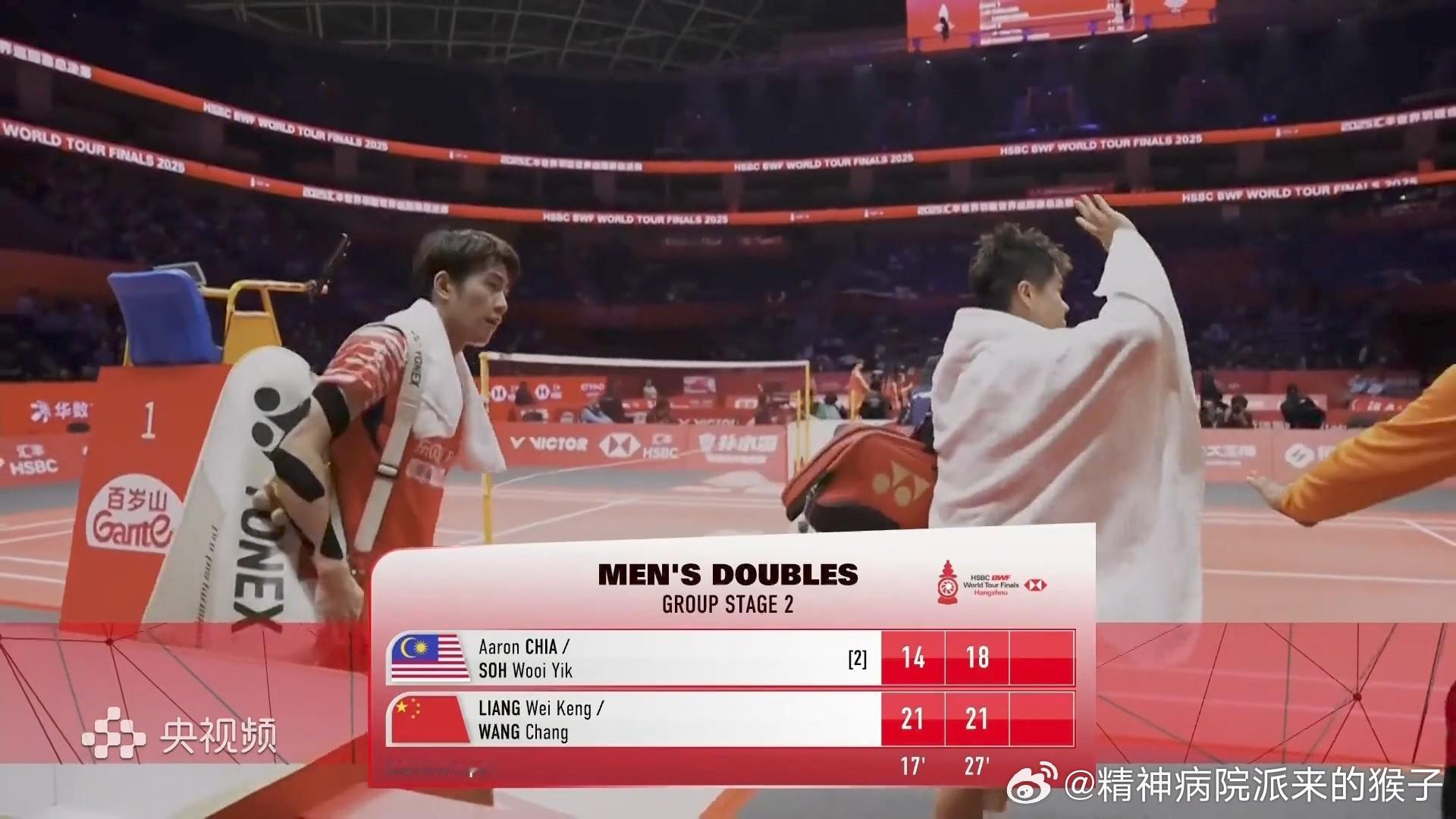 梁伟铿王昶2比0谢定苏伟译(14,18)2025年世界羽联年终总决赛男双小组赛下一场:梁伟铿王昶🇨🇳VS阿尔菲安菲克里🇮🇩目前一胜一负