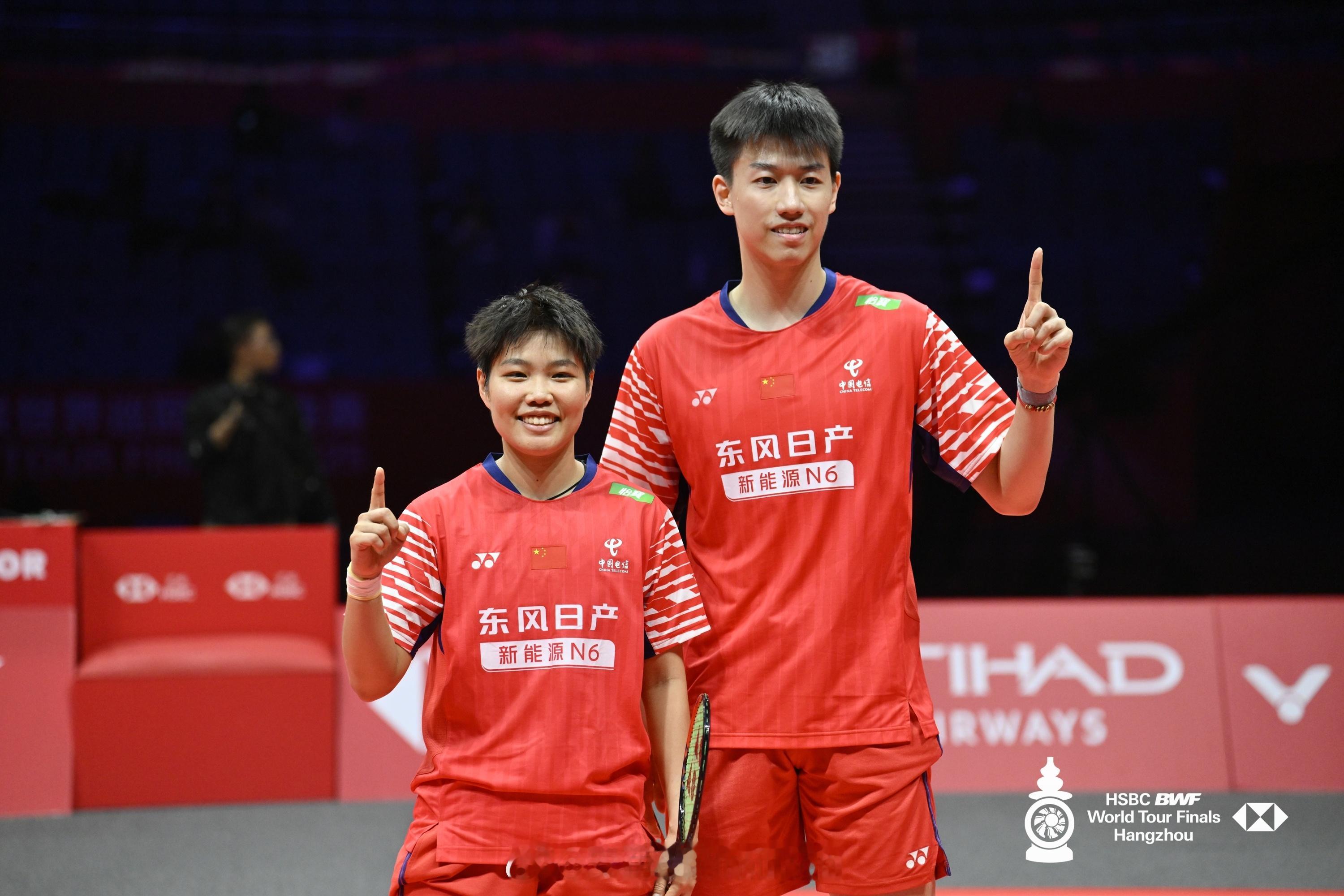 凤凰组合赛后采访🎤:即便小组出线,也要力争第一!Q:到了决胜局17比20时是不是反而会更加有放手一搏的心态了?冯彦哲:对。其实我们也是到了最后的最后才做调整,这是以后要注意的,在场上要及时,不要等比赛快结束了才调整,不是每次都有好运气的。这一点上总结出两个方面,一是在今后的比赛要敢于及时做出调整,二是要肯定自己今天的发挥。Q:应该是已经出线了,是不是缓解了备战明天争小组头名的压力?冯彦哲:其实不是的,因为我们和队友(蒋振邦/魏雅欣)分到了不同小组,这是一个好的结果。所以不能说我们已经出线就放松,我们也要全力去争取小组第一,这对后面淘汰赛的比赛有帮助。Q:今天贾一凡也是打了三局,下来还自嘲“三旬老人”今天很不容易,东萍也是一样的情况了。黄东萍:“三旬老人”嘛,到了比赛第二天,肯定更加对赛场有留恋。Q:经过两场小组赛,感觉自己的身体和比赛状态有好转吗?黄东萍:我觉得整体是有好转的,特别是今天的对手也是老将了,他们有很多变化,从第一分开始就有许多挑战。就是因为他们的老道,才让我们有了整场球的压力。即使是领先,但稍有松懈就会被追上,也给了我们备战后面比赛的启示。消息来源:组委会新闻服务凤凰组合率先晋级四强2025年世界羽联年终总决赛凤凰组合2比1吴埙阀赖洁敏